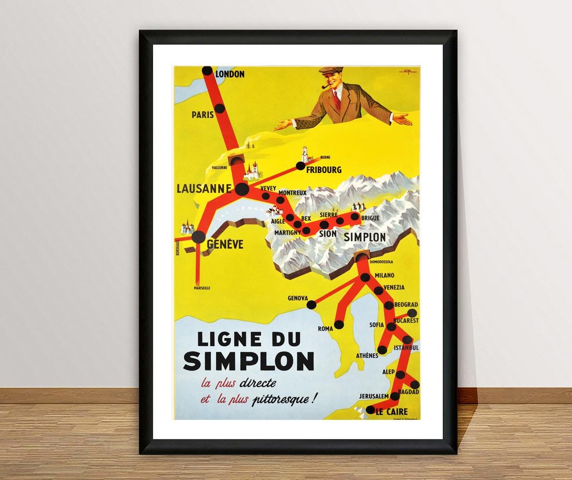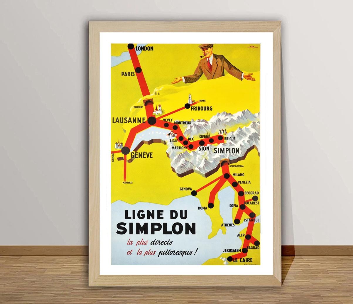 Ligne du Simplon Suisse Travel Poster - Poster Paper or Canvas Print / Gift Idea / Wall Decor