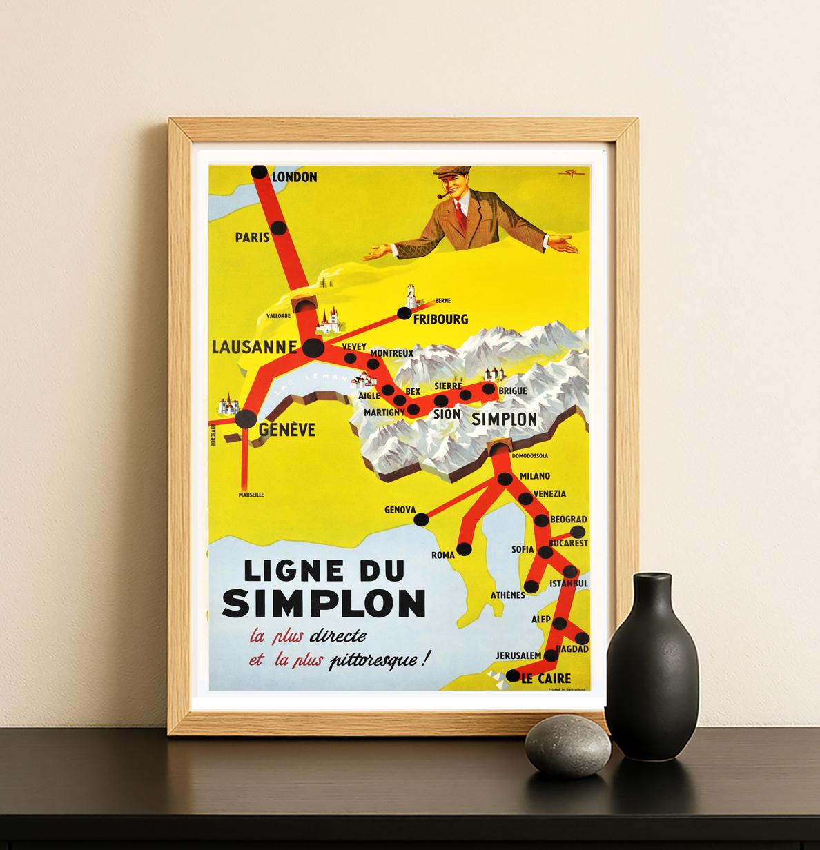 Ligne du Simplon Suisse Travel Poster: Vintage Train Art Print