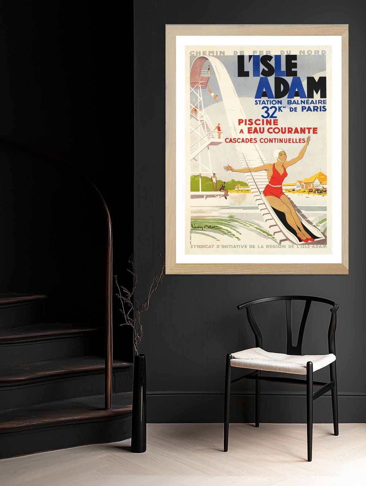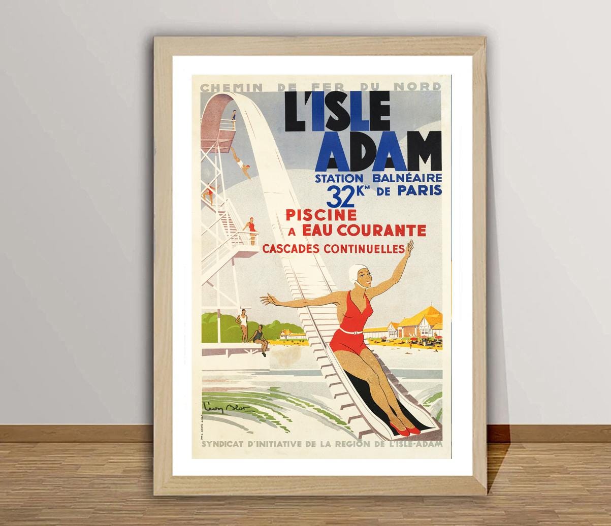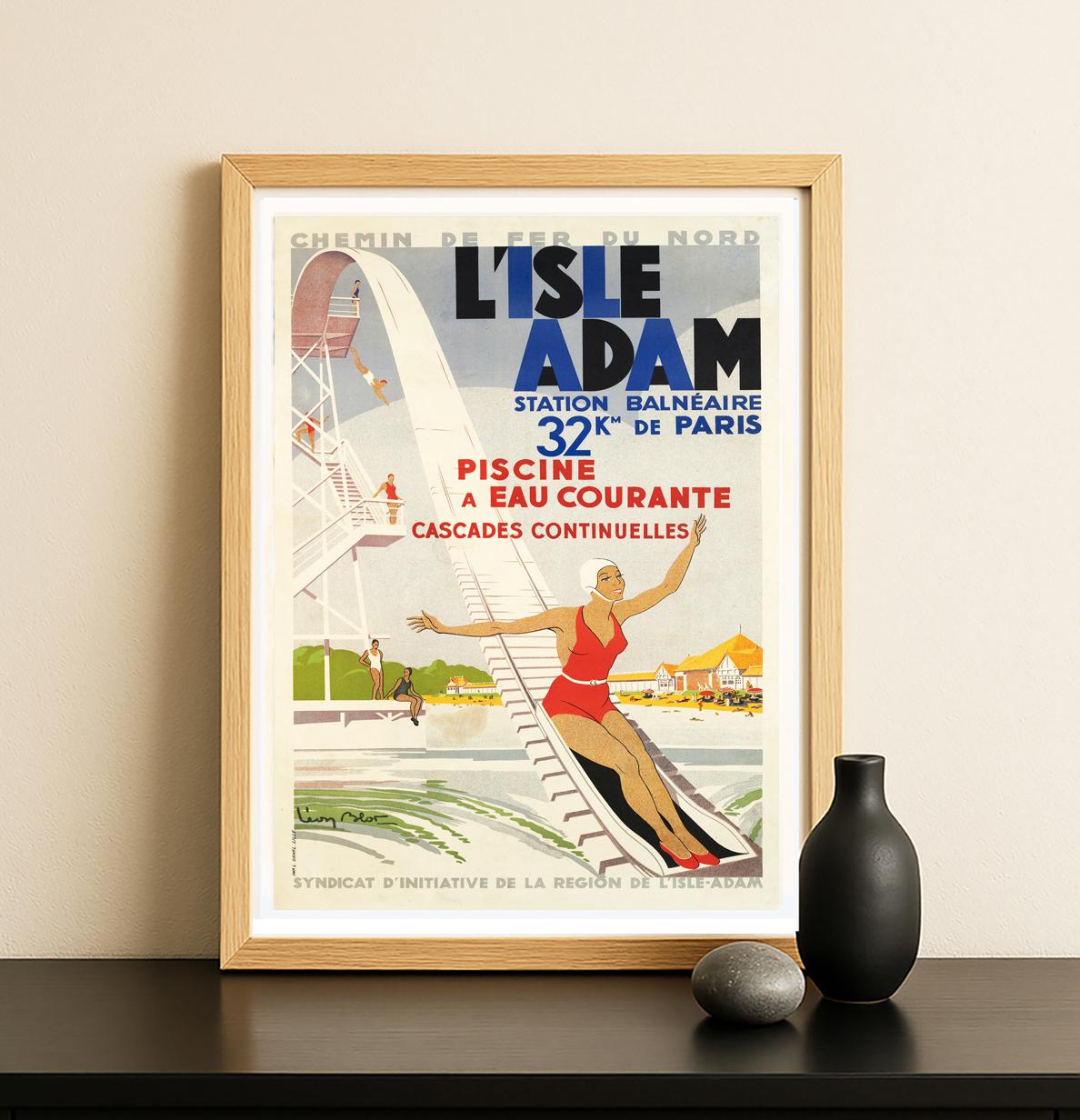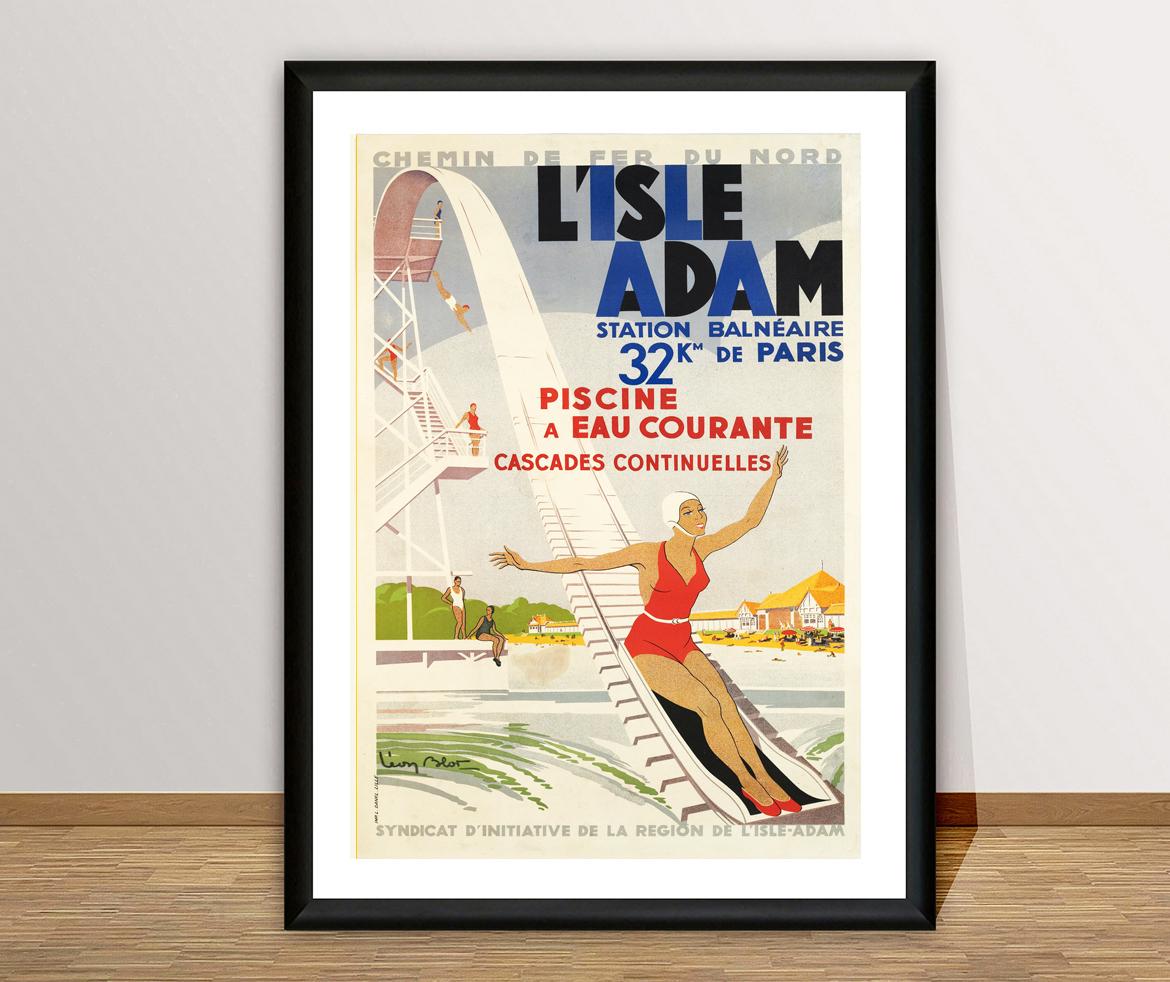 L'Isle Adam Piscine a Eau Courante Cascades Continuelles Vintage Travel Poster- Poster Paper or Canvas Print