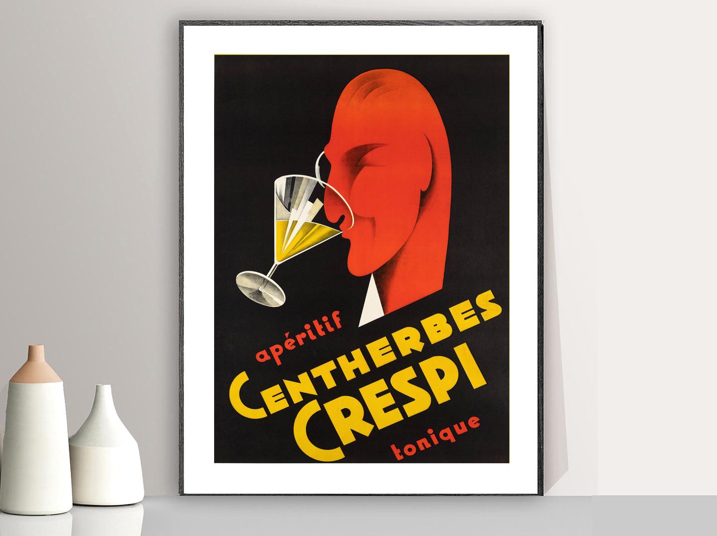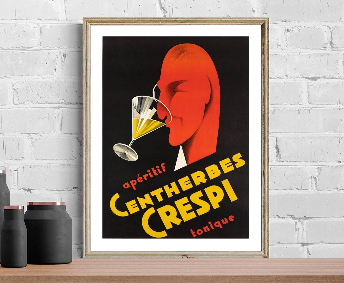 Vintage Aperitif Centherbes Crespi Tonique Drink Poster - Reproduction of a Retro Artwork, Decorative Purposes Wall Decor - Poster Paper, Canvas Print