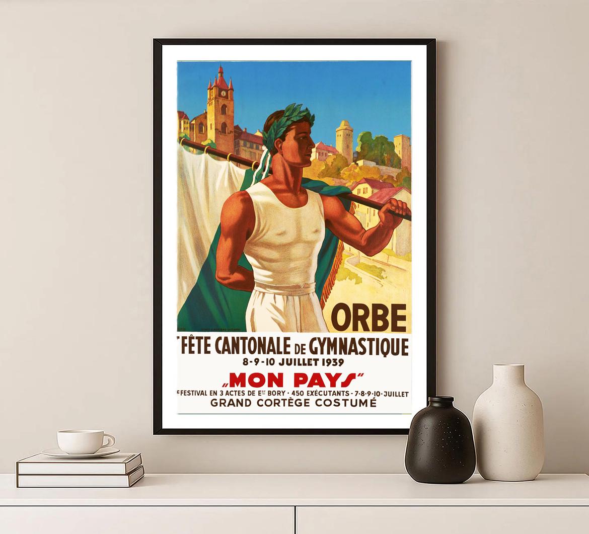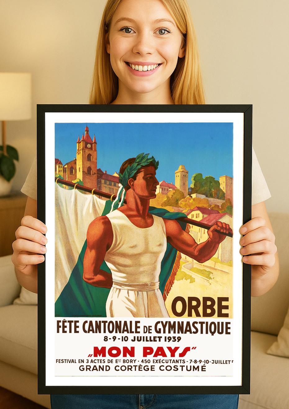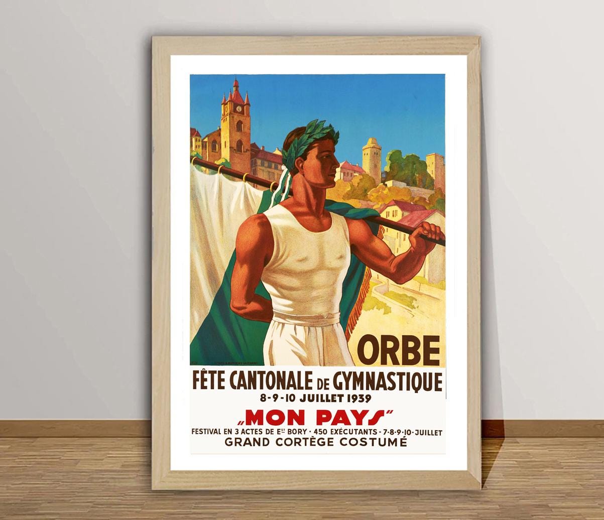Vintage Orbe Fete Cantonale de Gymnastique Sport Poster: Swiss Vintage Sport Print - Poster Print or Canvas Print