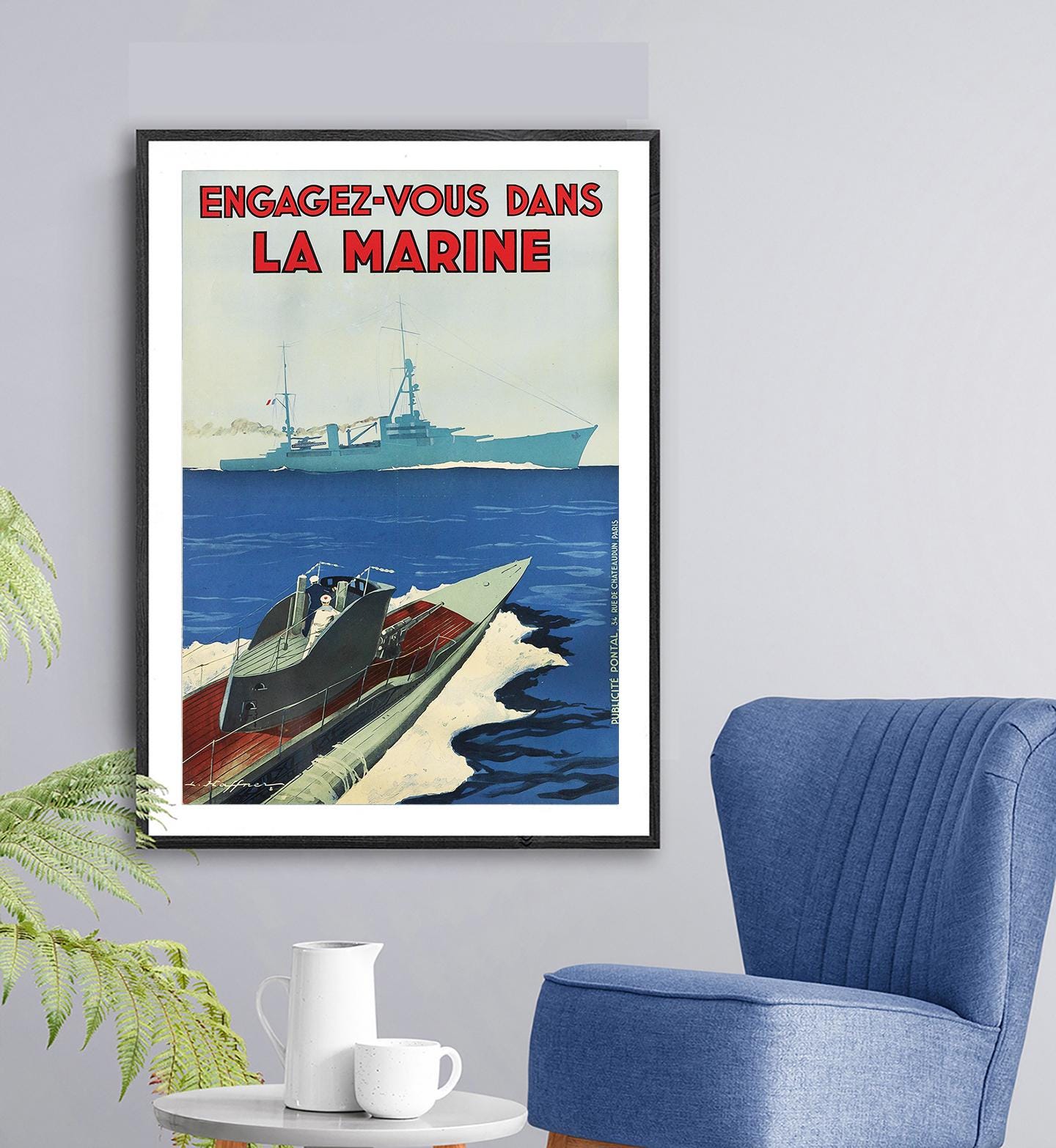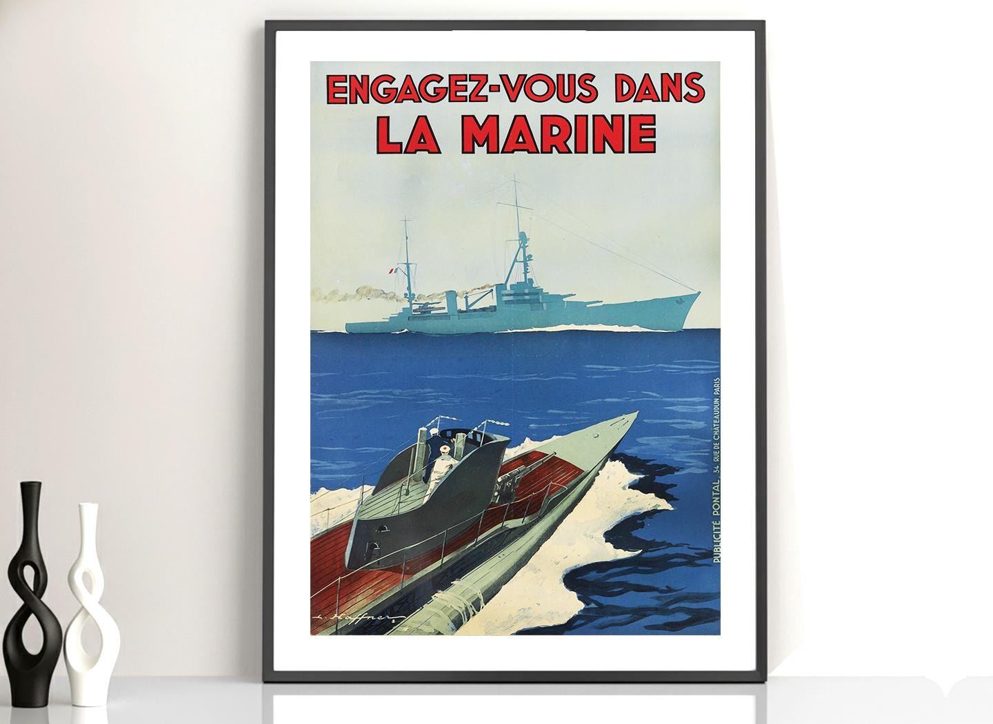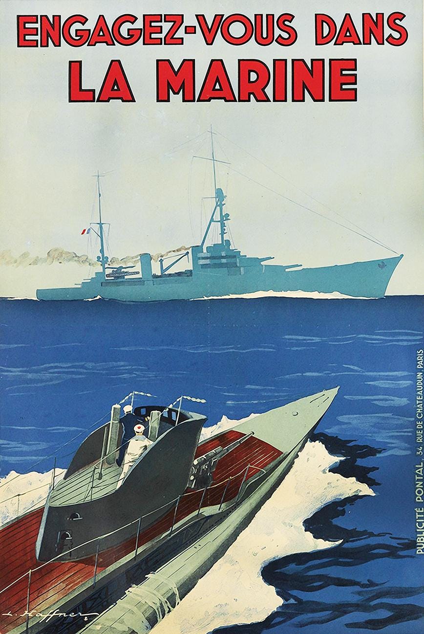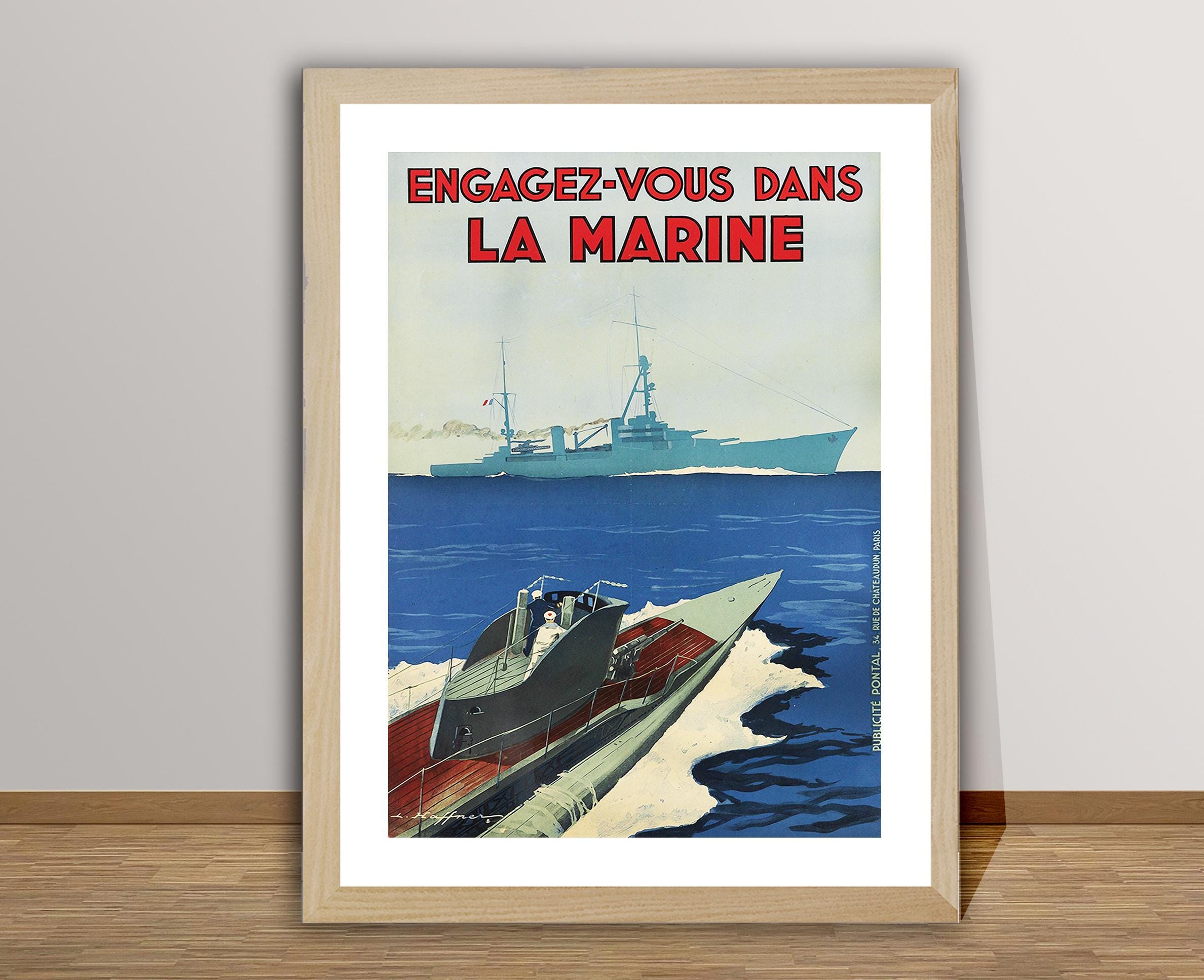 Vintage Engagez Vous dans La Marine (Join the Navy) Poster - Poster Print or Canvas Print / Gift Idea / Wall Decor