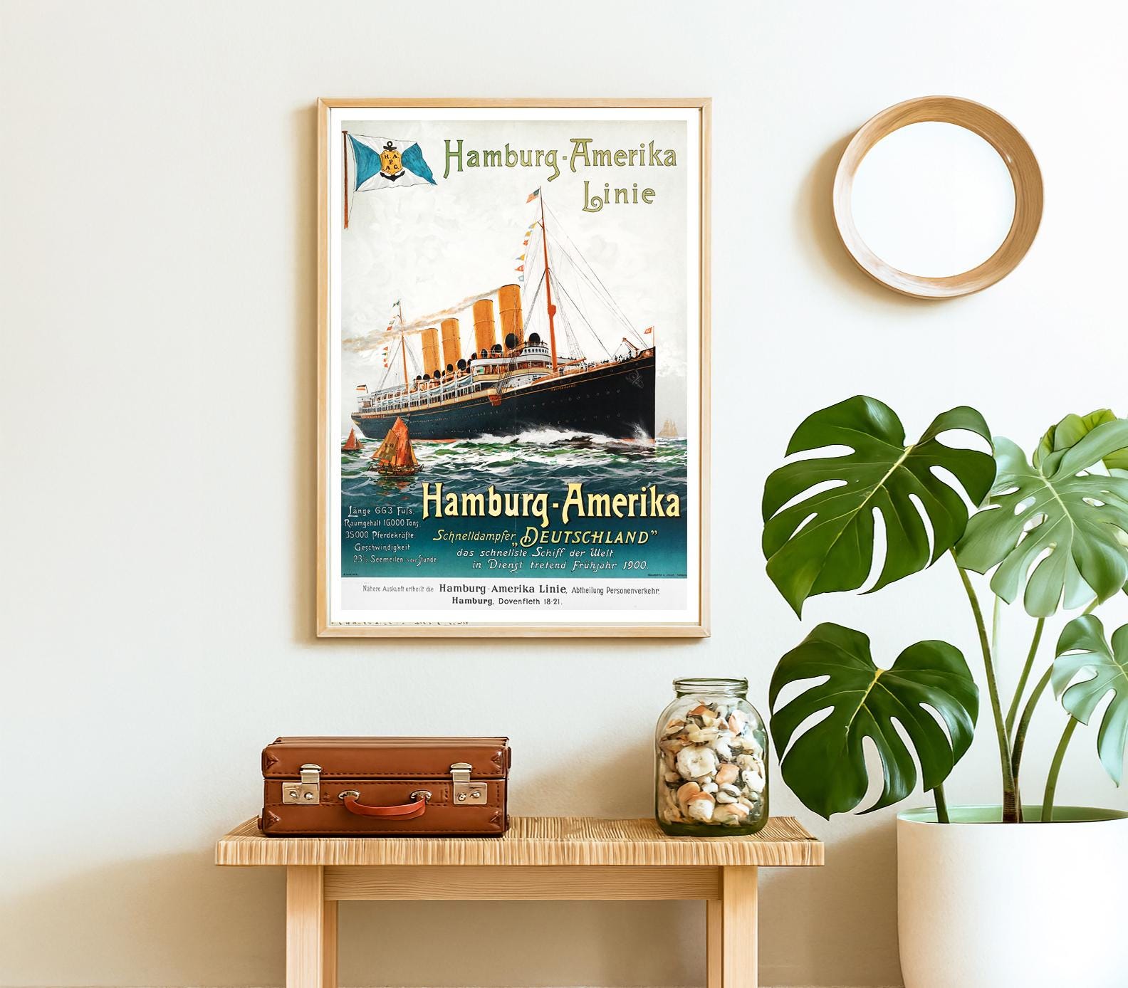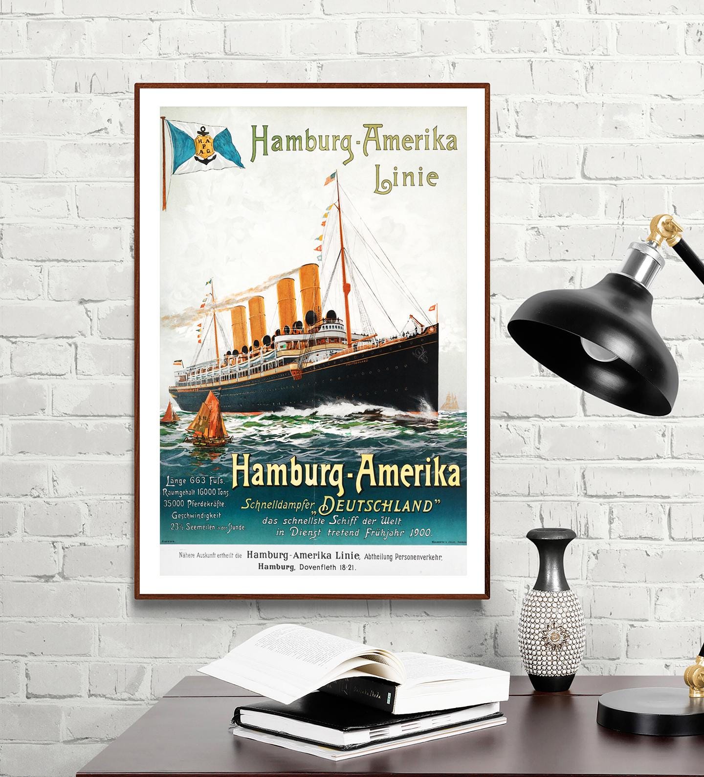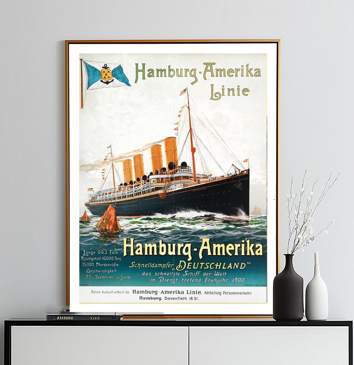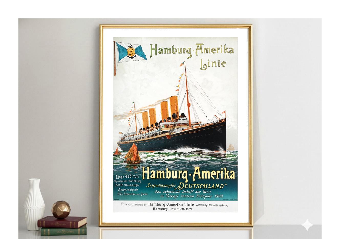 Hamburg Amerika Line Vintage Travel Poster: Maritime Romance Wall Art