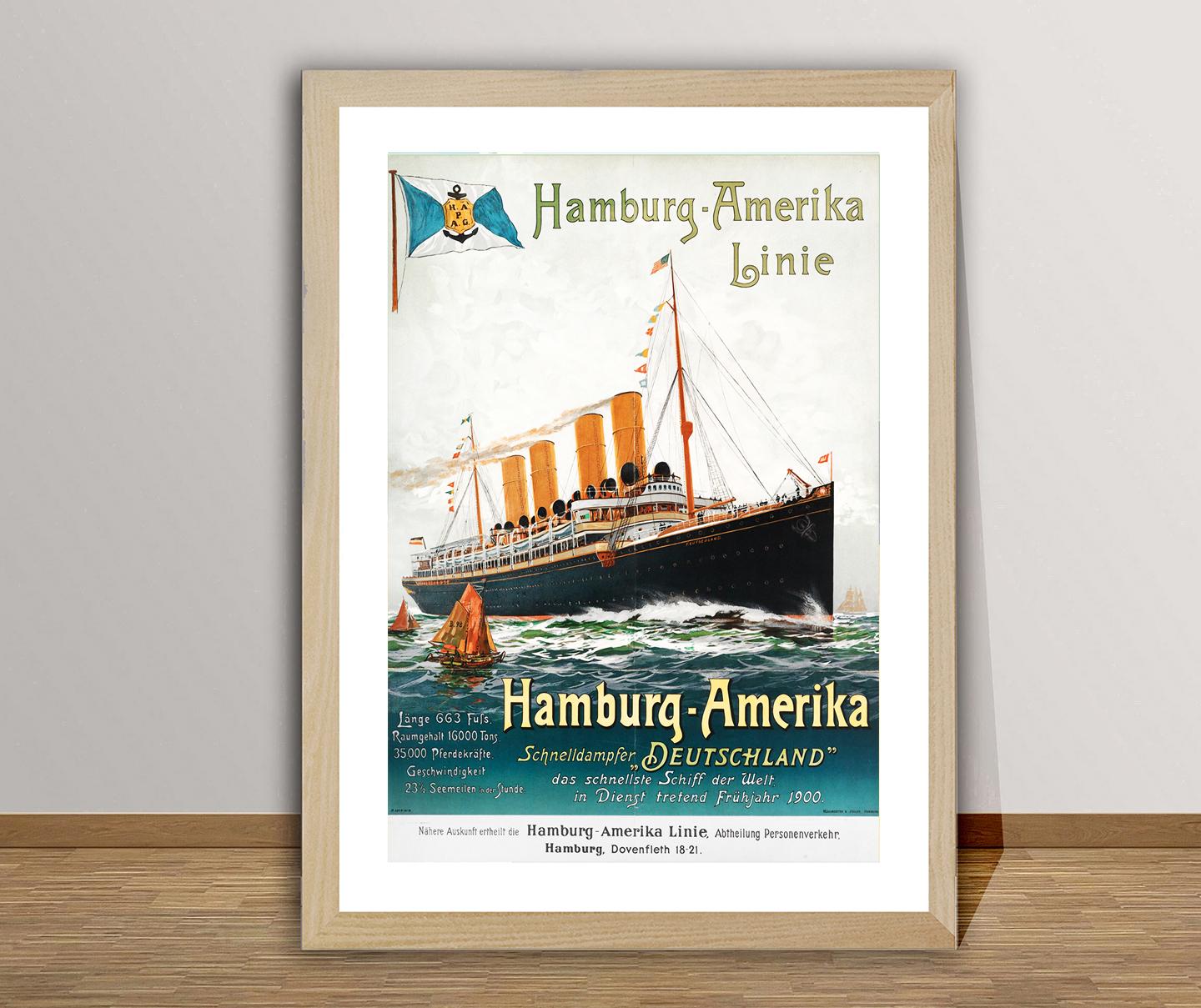 Hamburg Amerika Line Vintage Travel Poster - Poster Paper or Canvas Print / Gift Idea