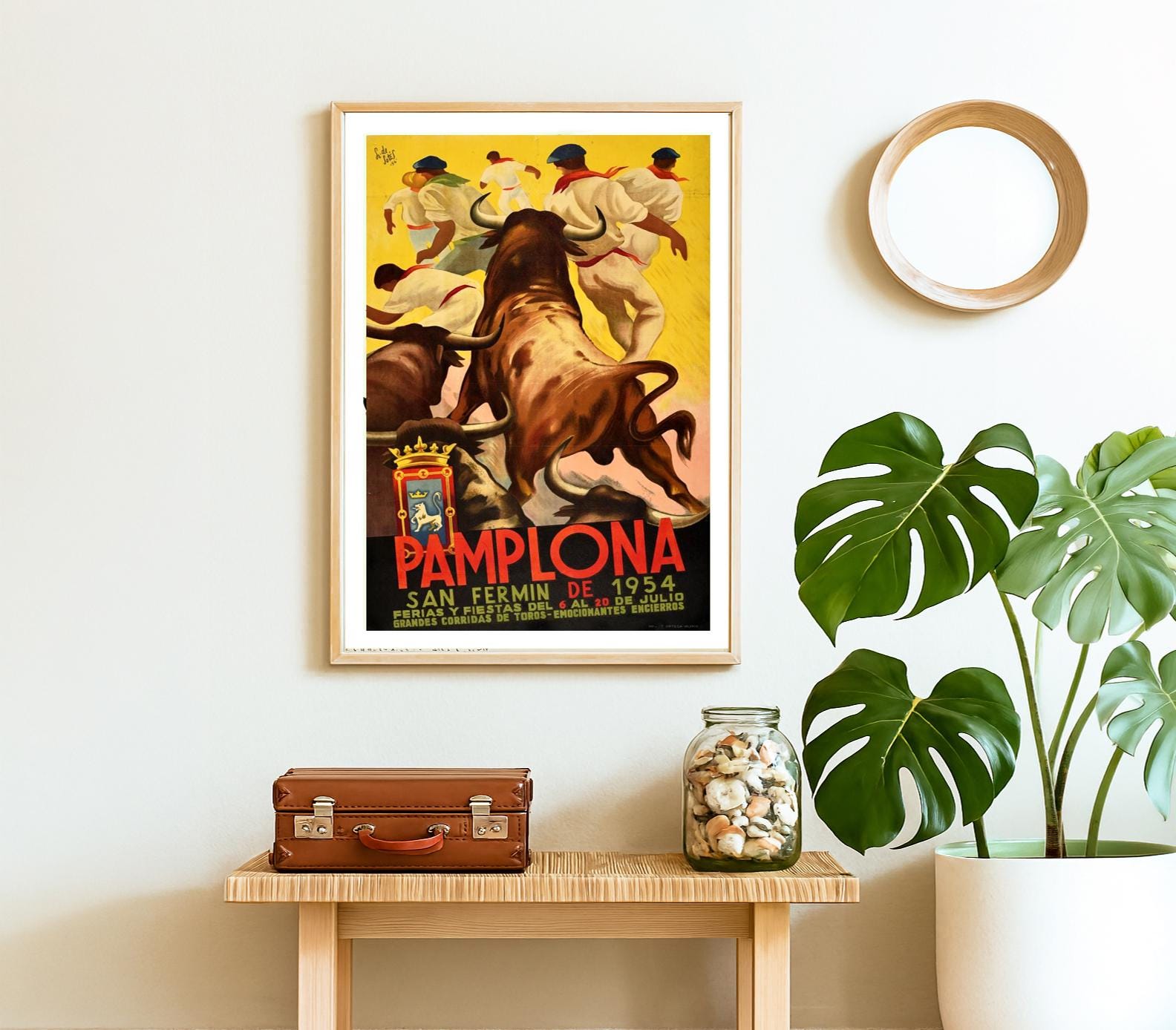Pamplona Ferias y Fiestas San Fermin Vintage Travel Poster - Poster Paper or Canvas Print / Gift Idea / Wall Decor