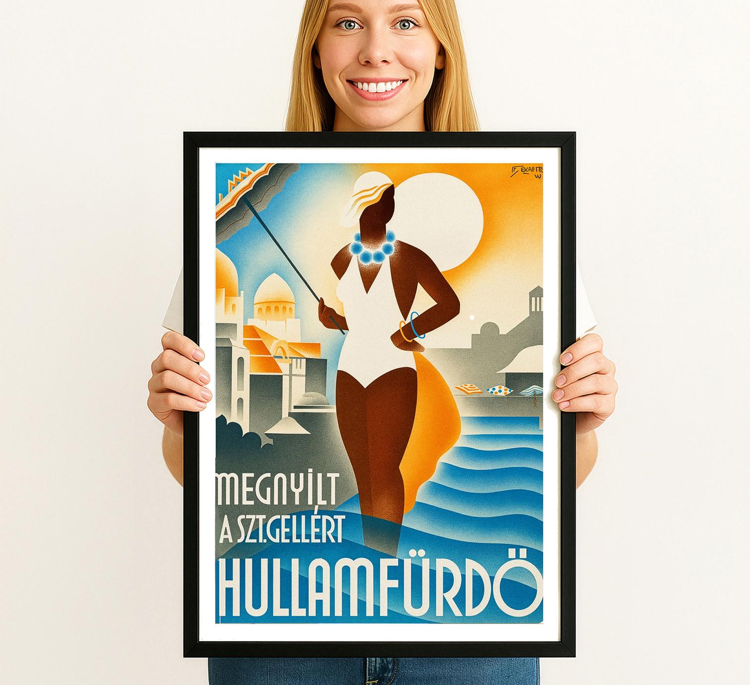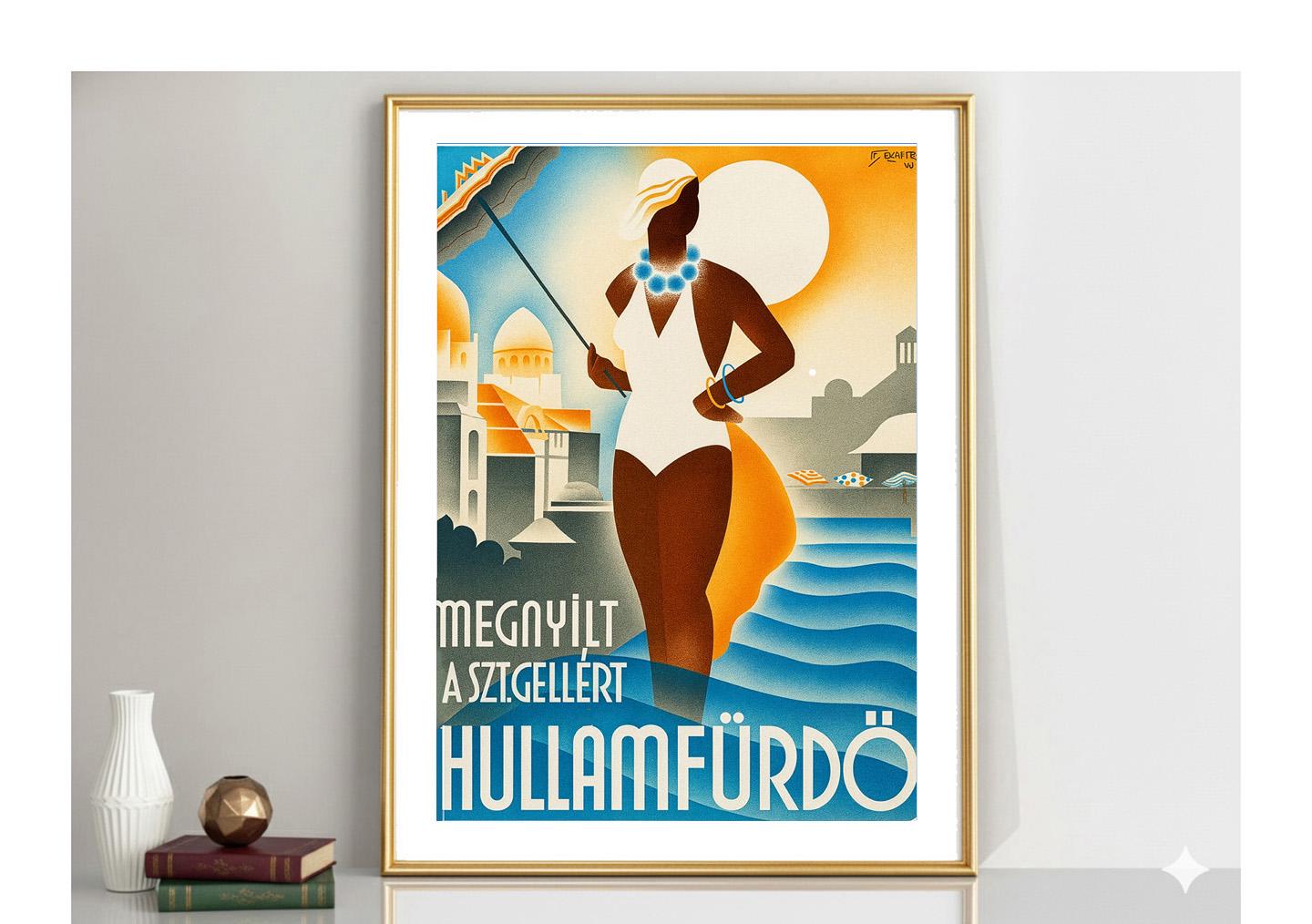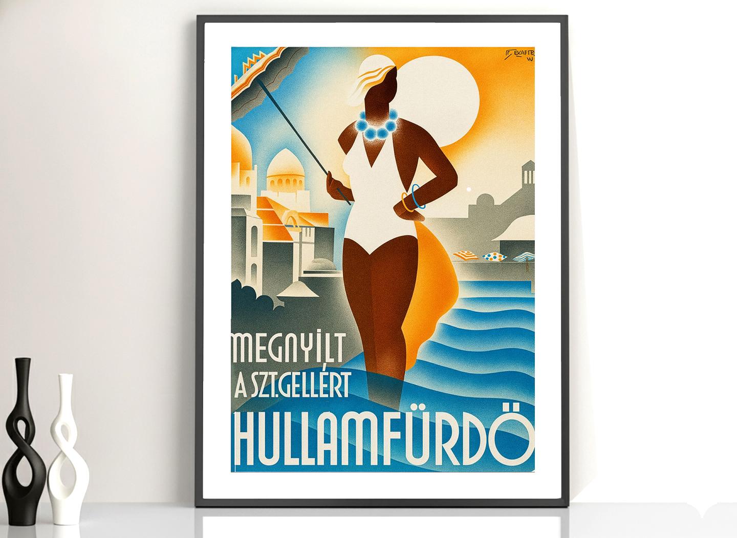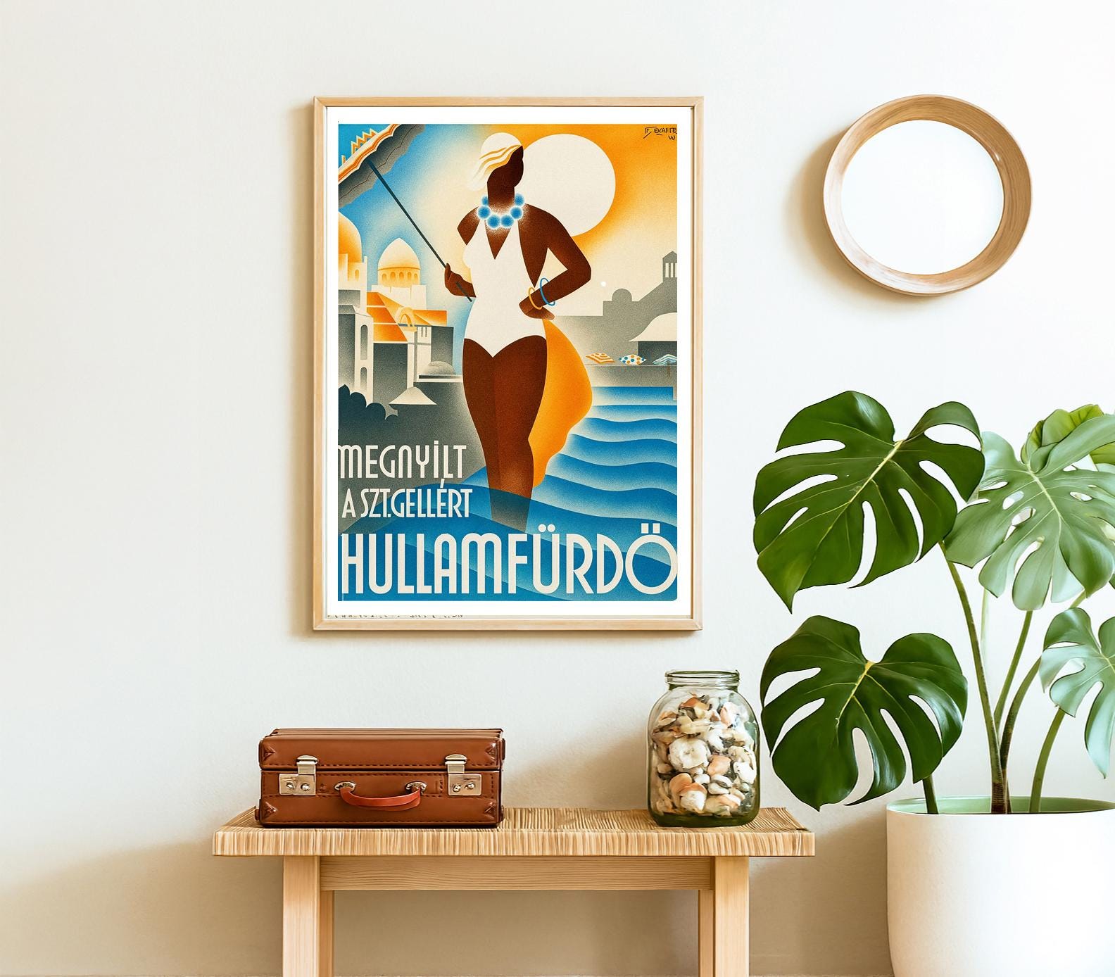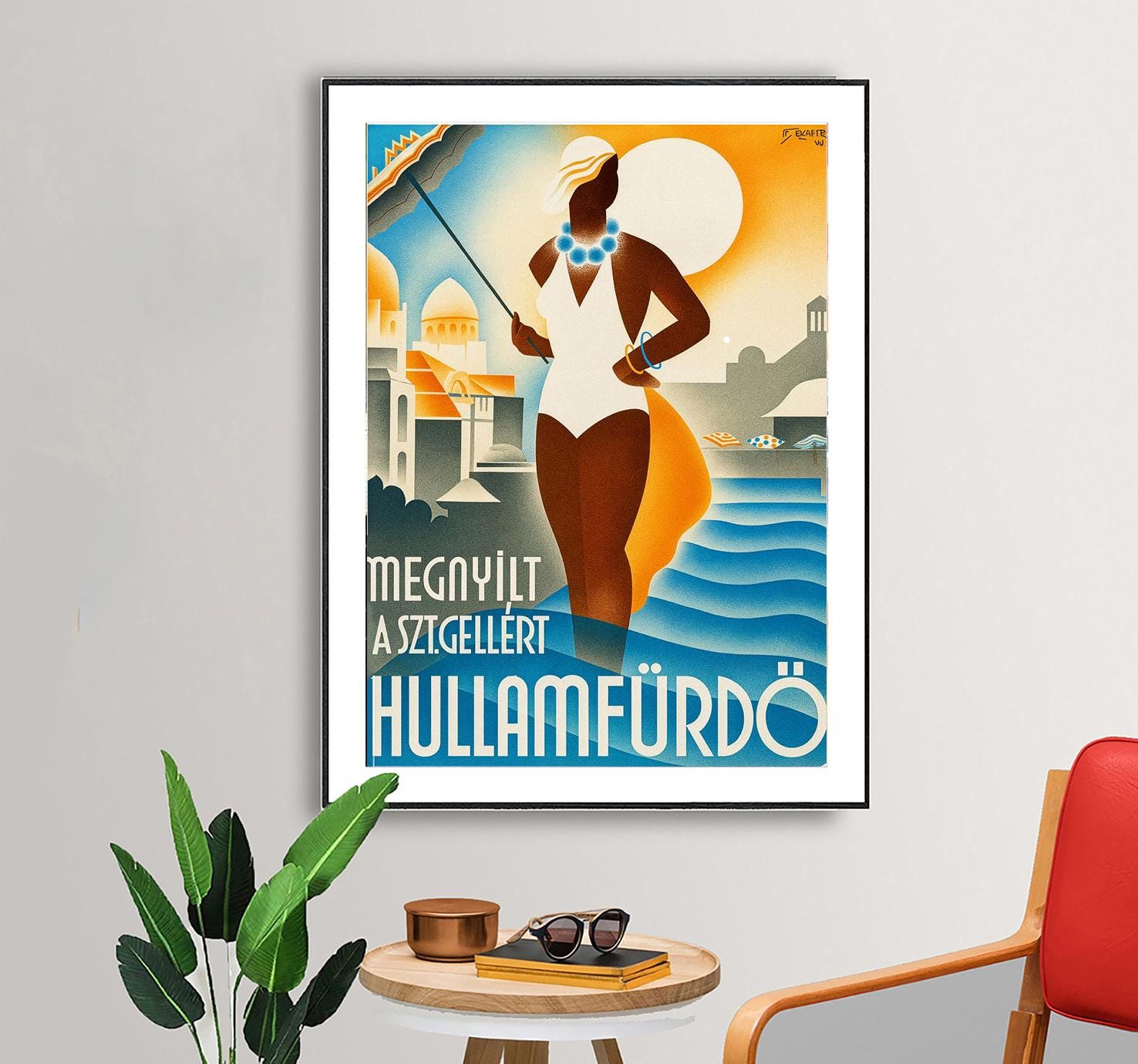 Hullamfürdö Megnyilt A. Szt. Gellert, Hungary Vintage Art Print - Poster Paper or Canvas Print