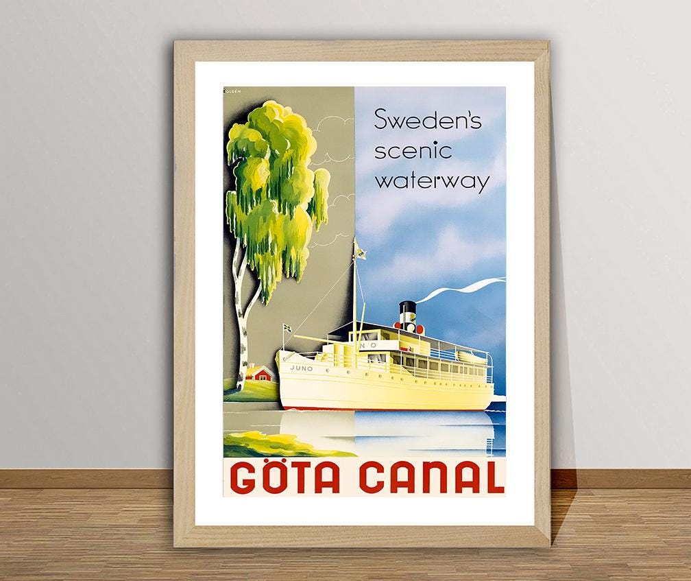 Sweden Göta Canal Vintage Travel Poster: Retro Wall Decor