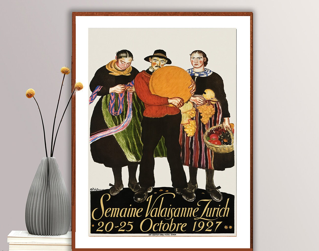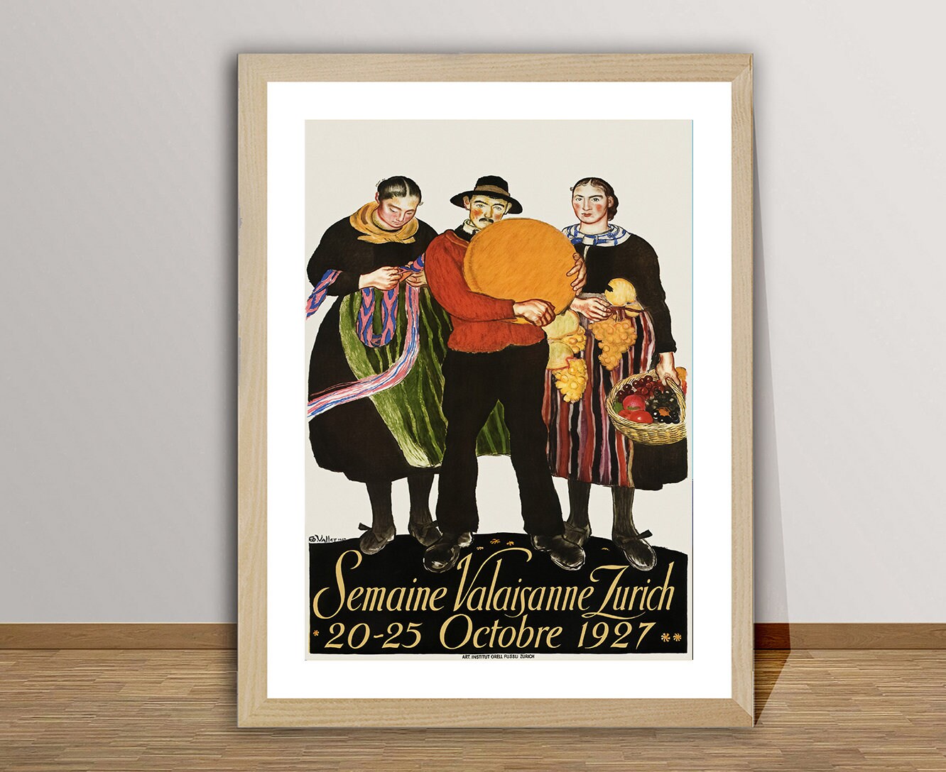 Semaine Valaisanne Zurich, 1927 Vintage Travel Poster - Poster Paper or Canvas Print / Gift Idea