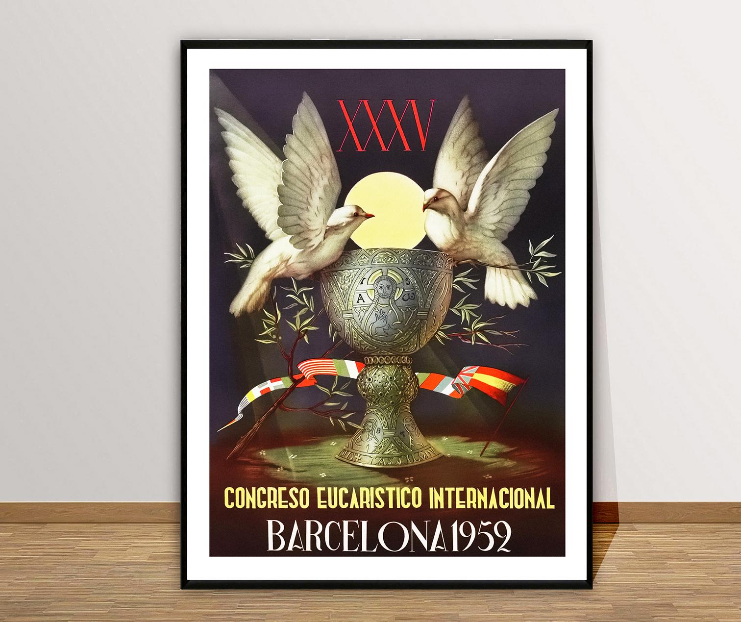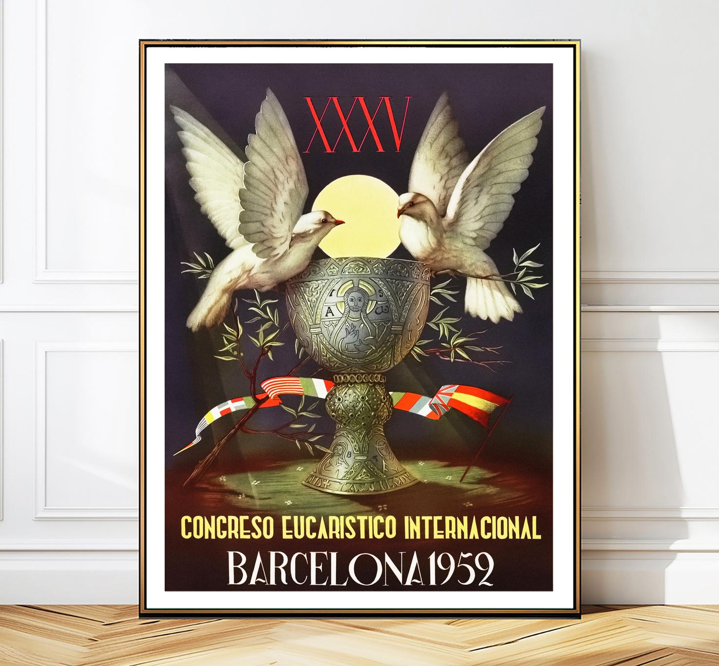 Barcelona 1952 Vintage Travel Poster: Eucharistic Congress Print