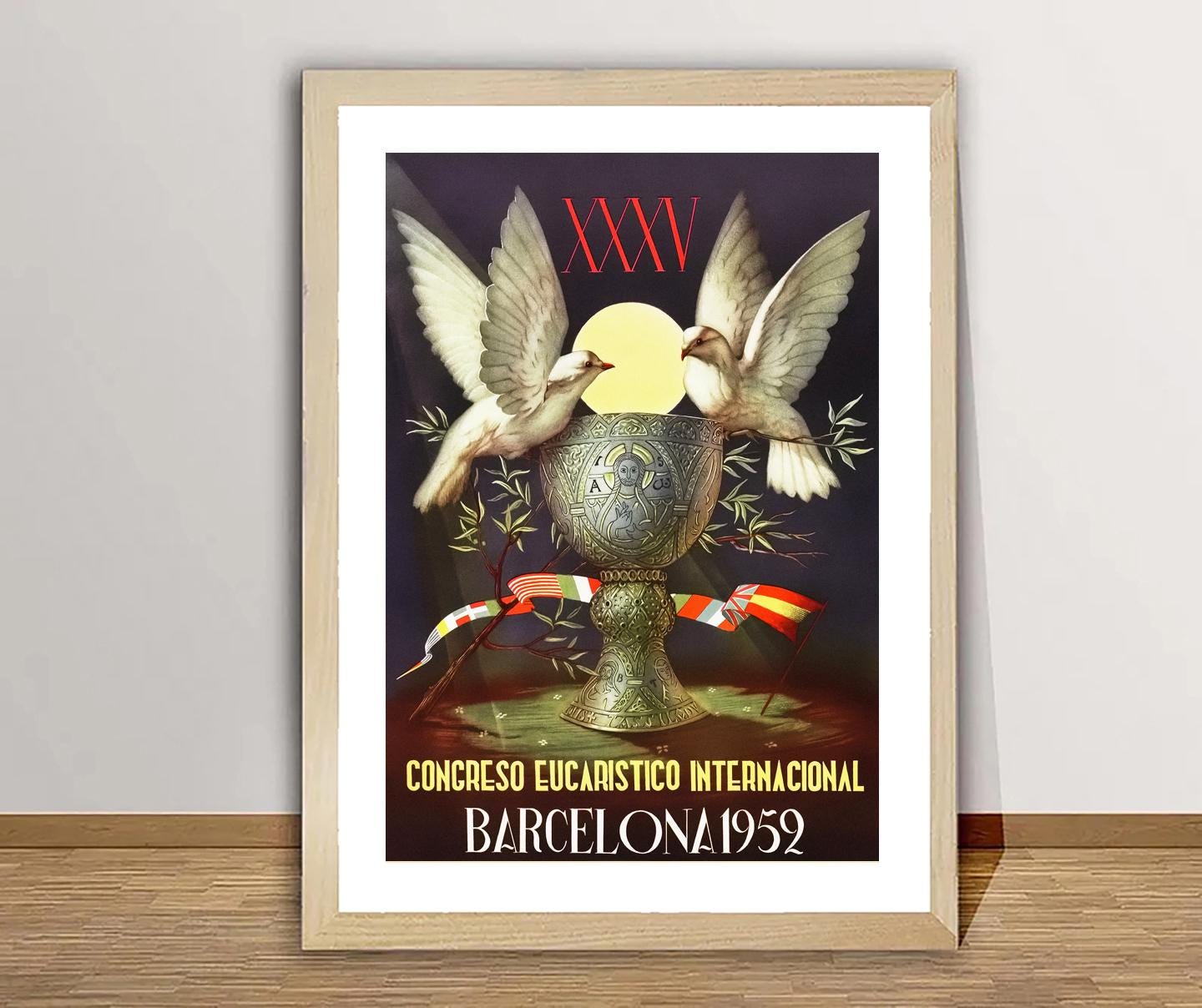 Congreso Eucaristico Internacional, Barcelona 1952 Vintage Travel Poster - Poster Paper or Canvas Print