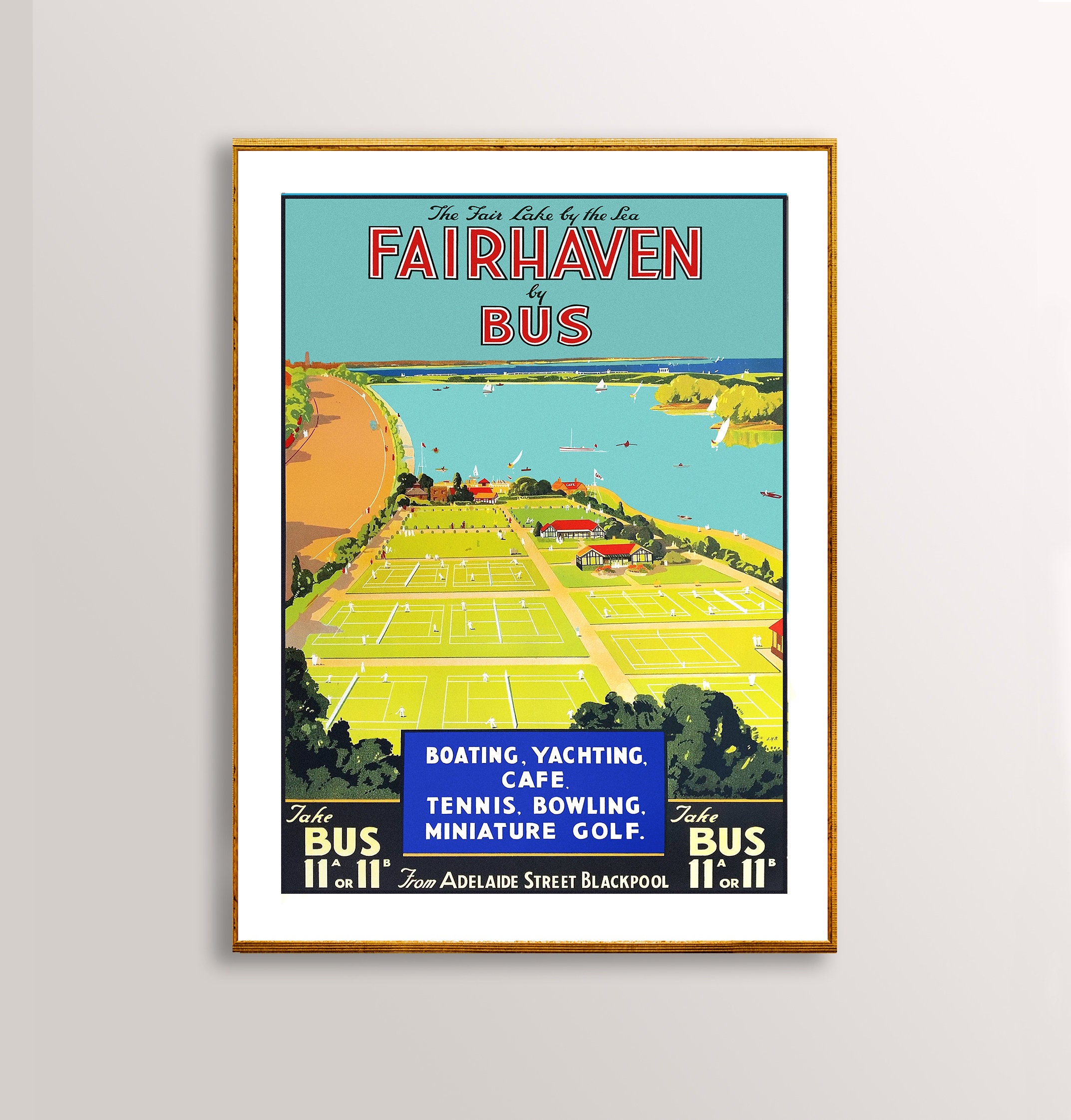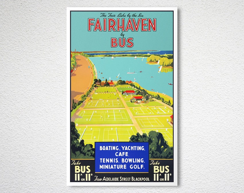 The Fair Lake by the Sea Fairhaven by Bus, USA Vintage Travel Poster - Poster Paper or Canvas Print / Gift Idea / Wall Decor