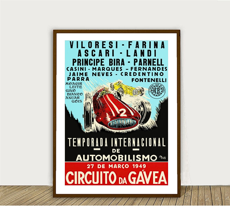 Circuito da Gavea, Rio de Janeiro, Brazil, 1949 Vintage Grand Prix Poster - Poster Paper or Canvas Print /Gift Idea/ Wall Decor