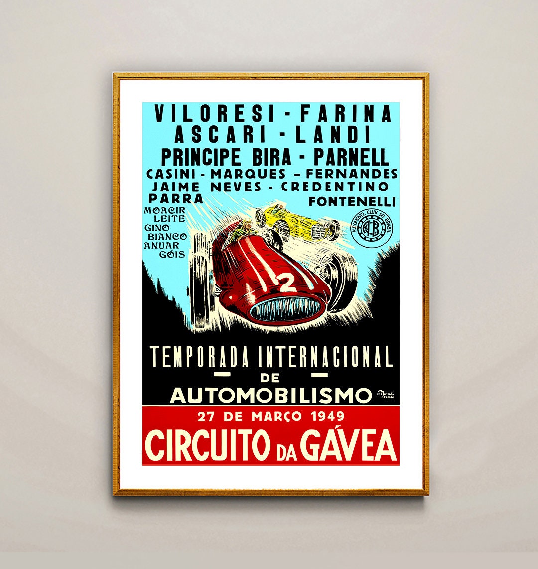 Circuito da Gavea, Temporada Internacional de Automobilismo Vintage Grand Prix Poster, 1949 - Retro Grand Prix Poster / Gift Idea