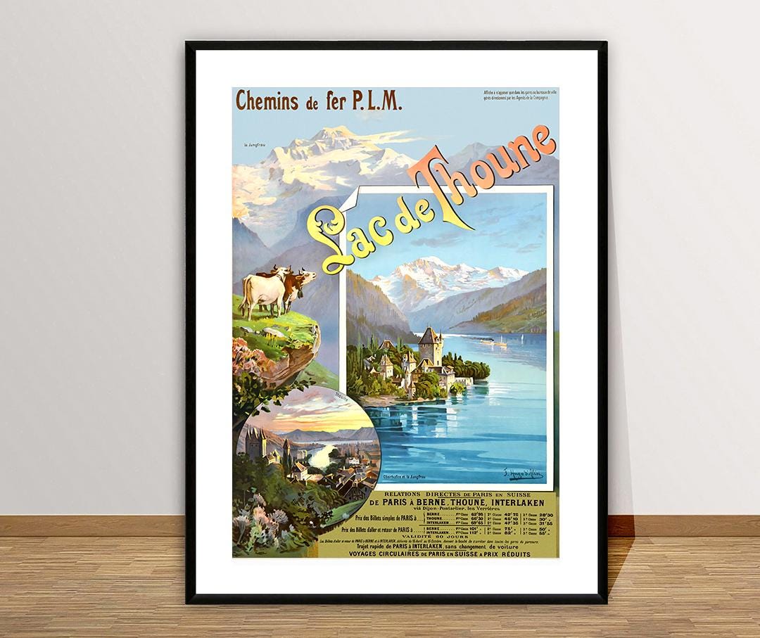 Lac de Thoune, Switzerland Vintage Travel Poster - Poster Print or Canvas Print / Gift Idea
