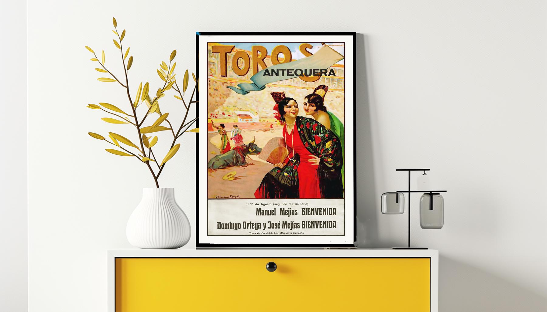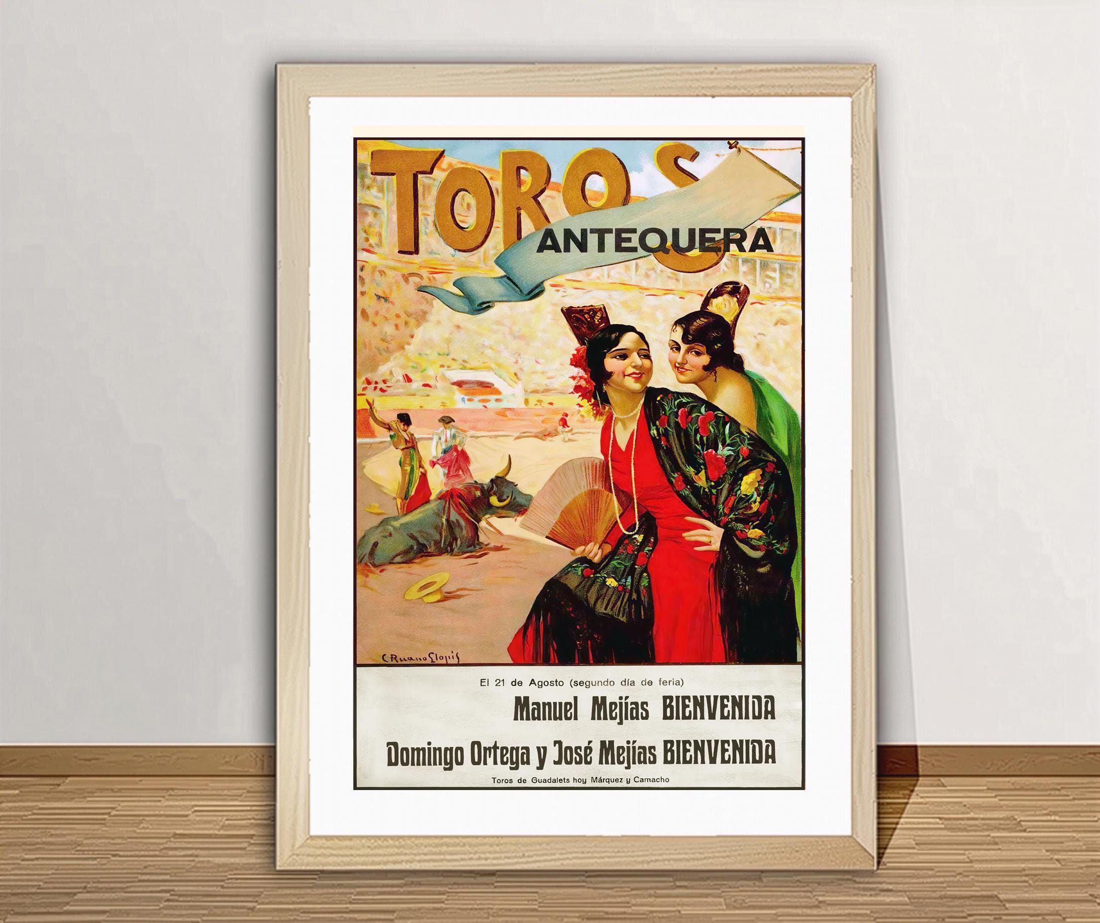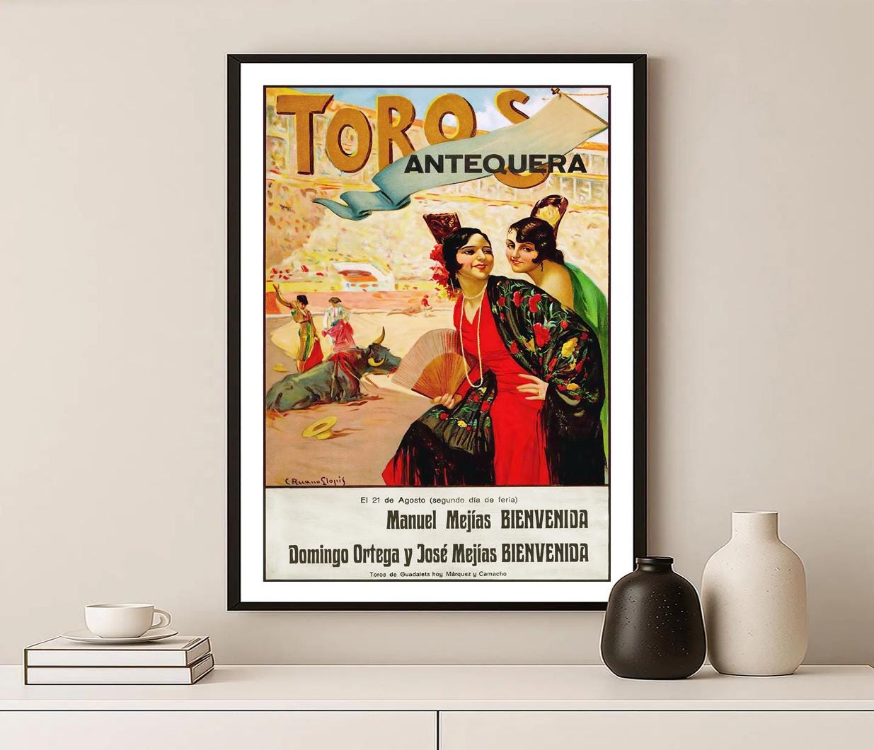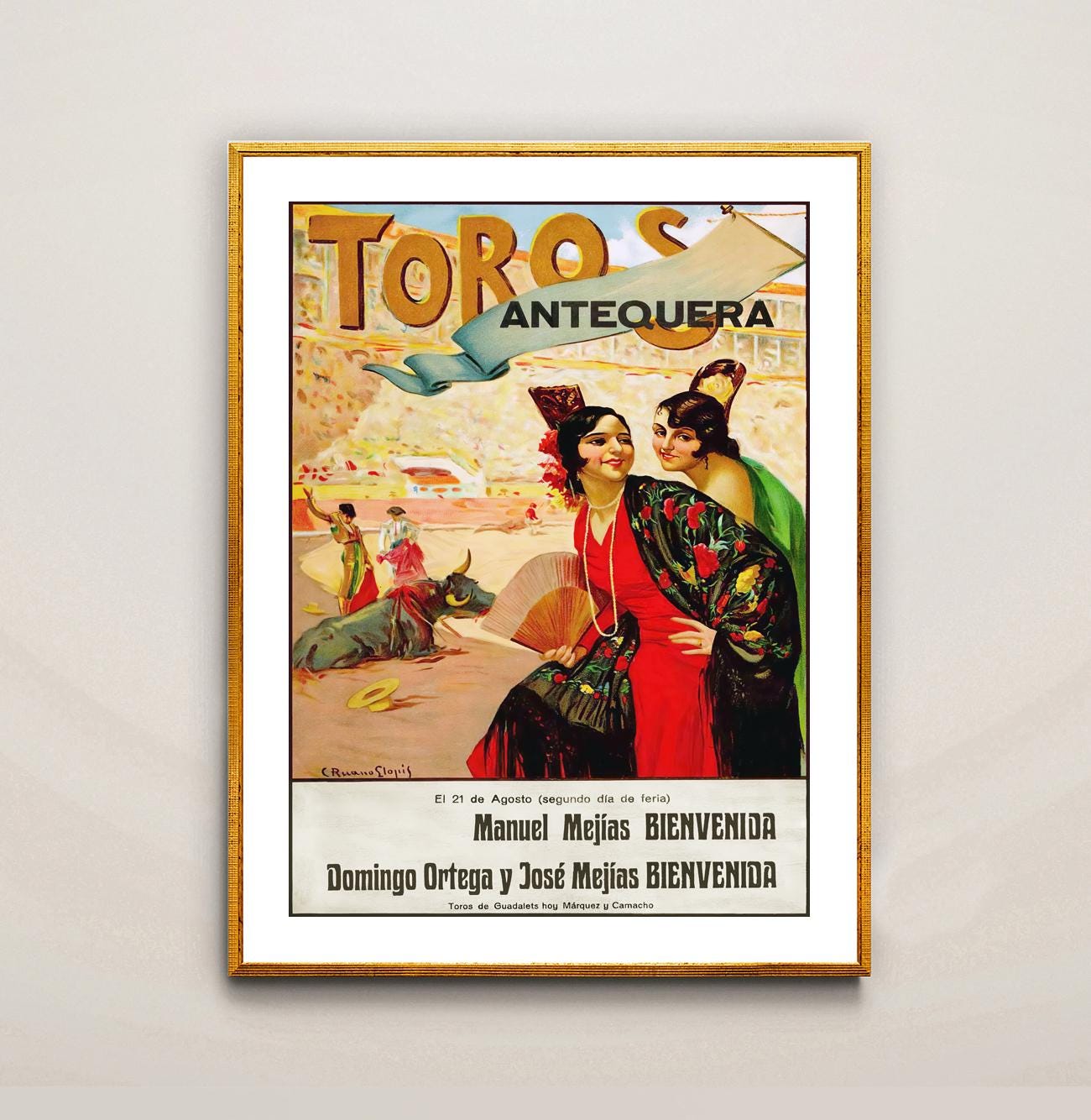 Vintage Toros Antequera Travel Poster: Spanish Bullfighting Art Print