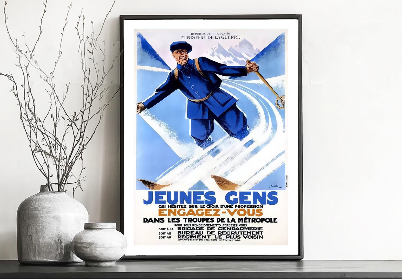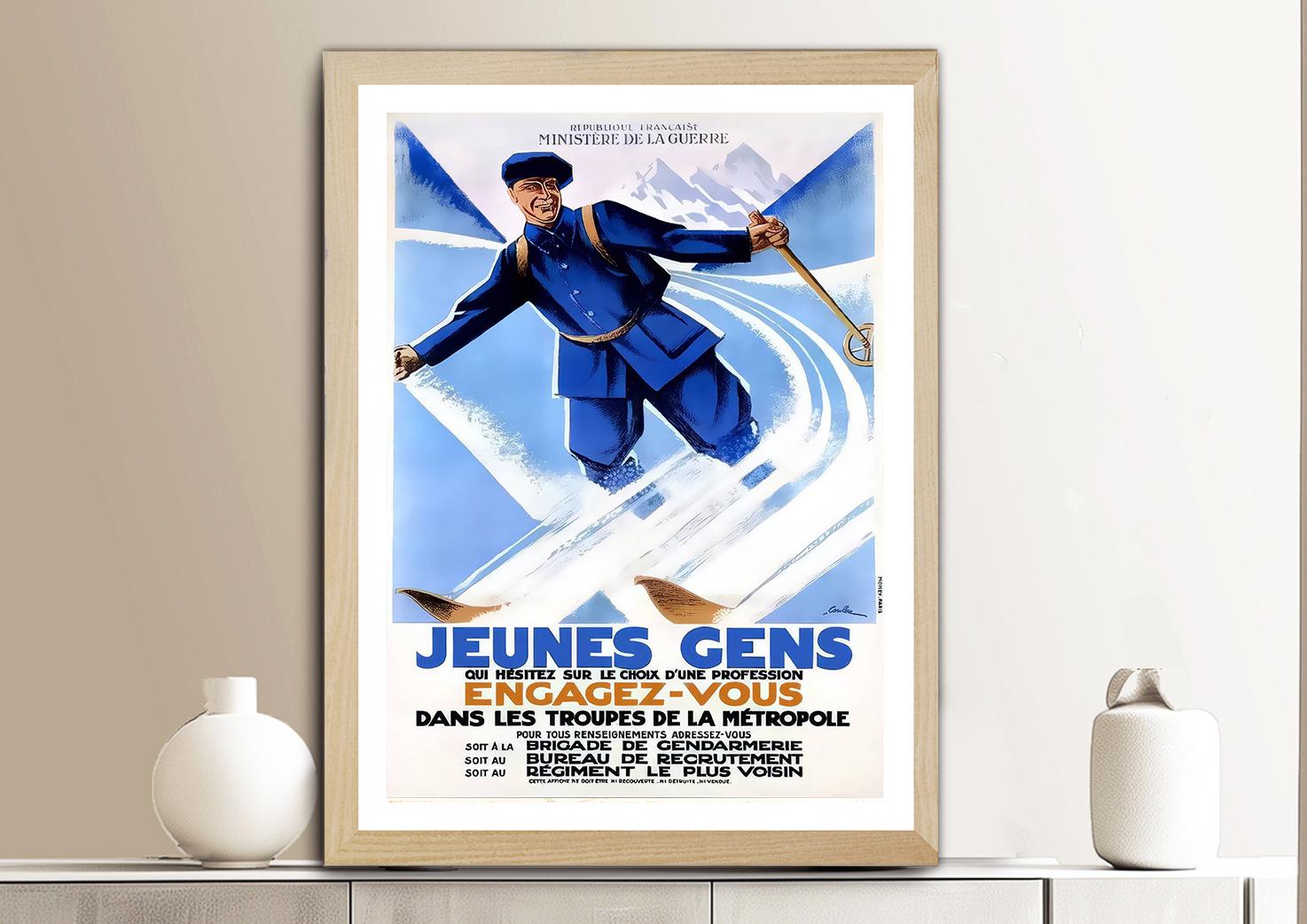 Jeunes Gens, Engagez Vous Vintage Ski Poster- Poster Paper or Canvas Print / Gift Idea / Wall Decor