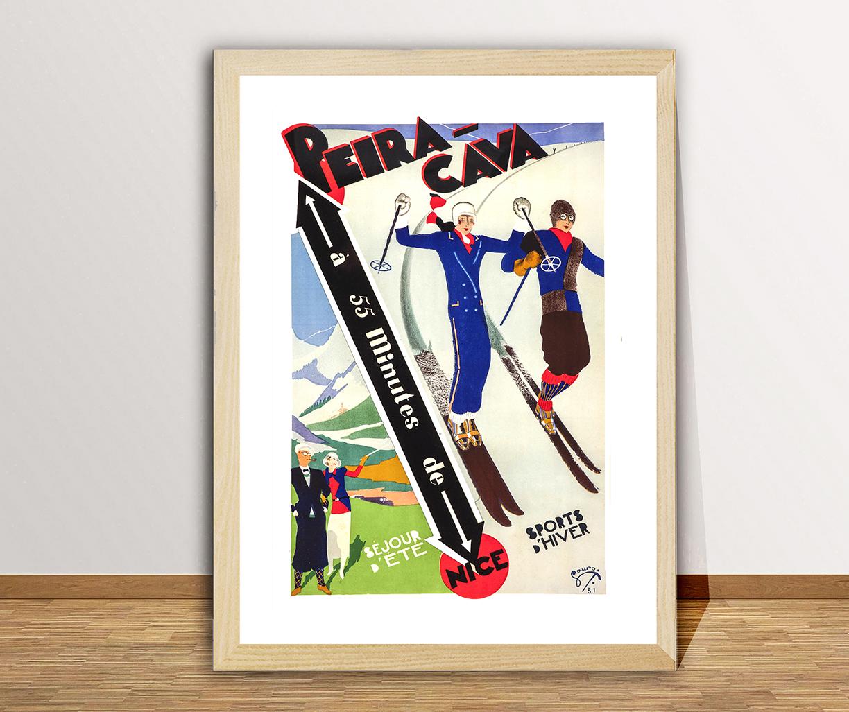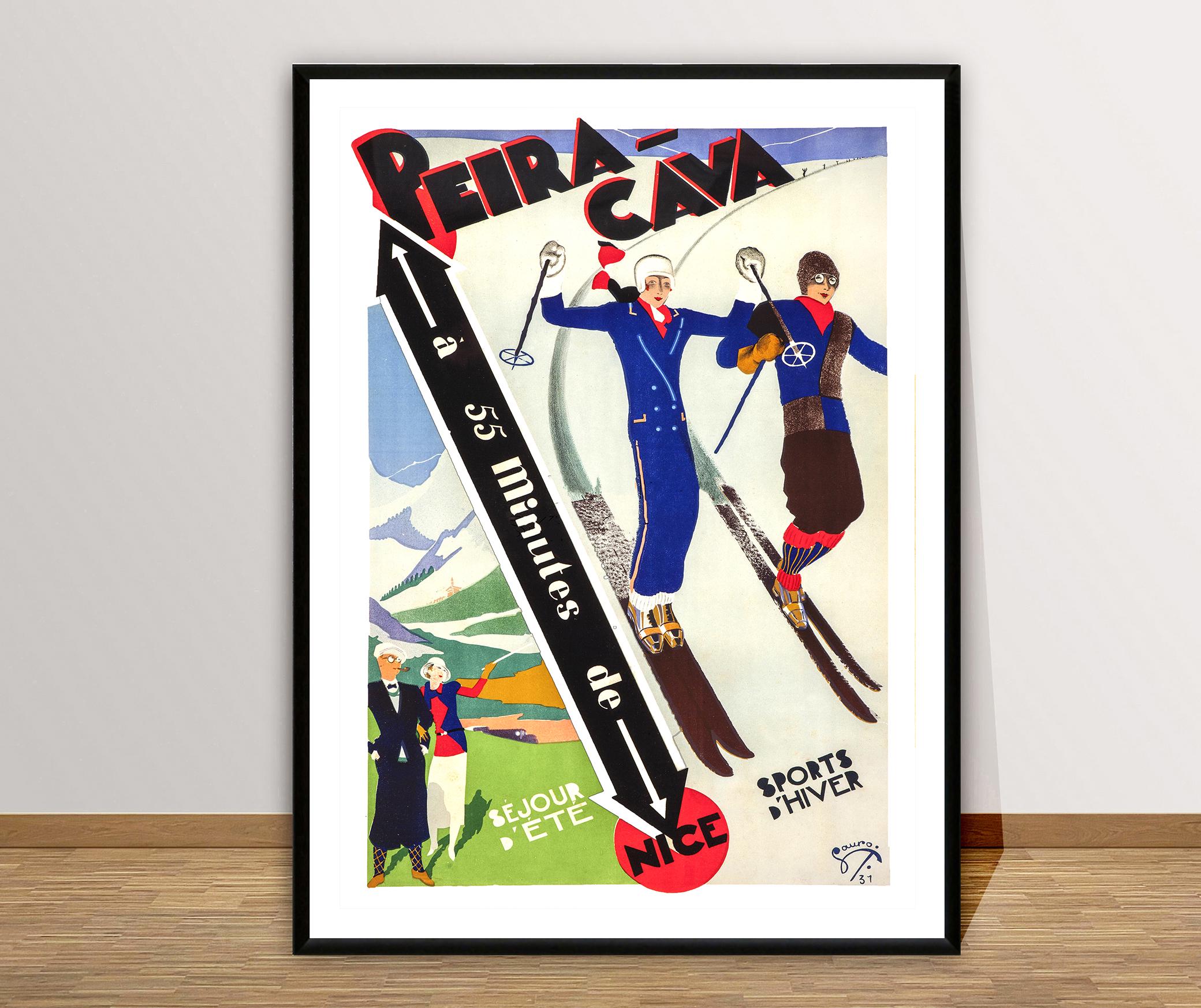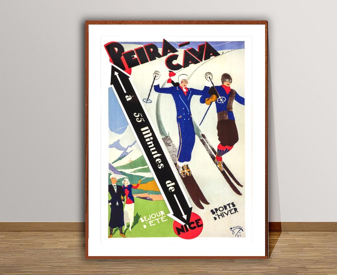 Peira Cava, 55 minutes de Nice, France Vintage Ski Poster - Poster Paper or Canvas Print / Gift Idea