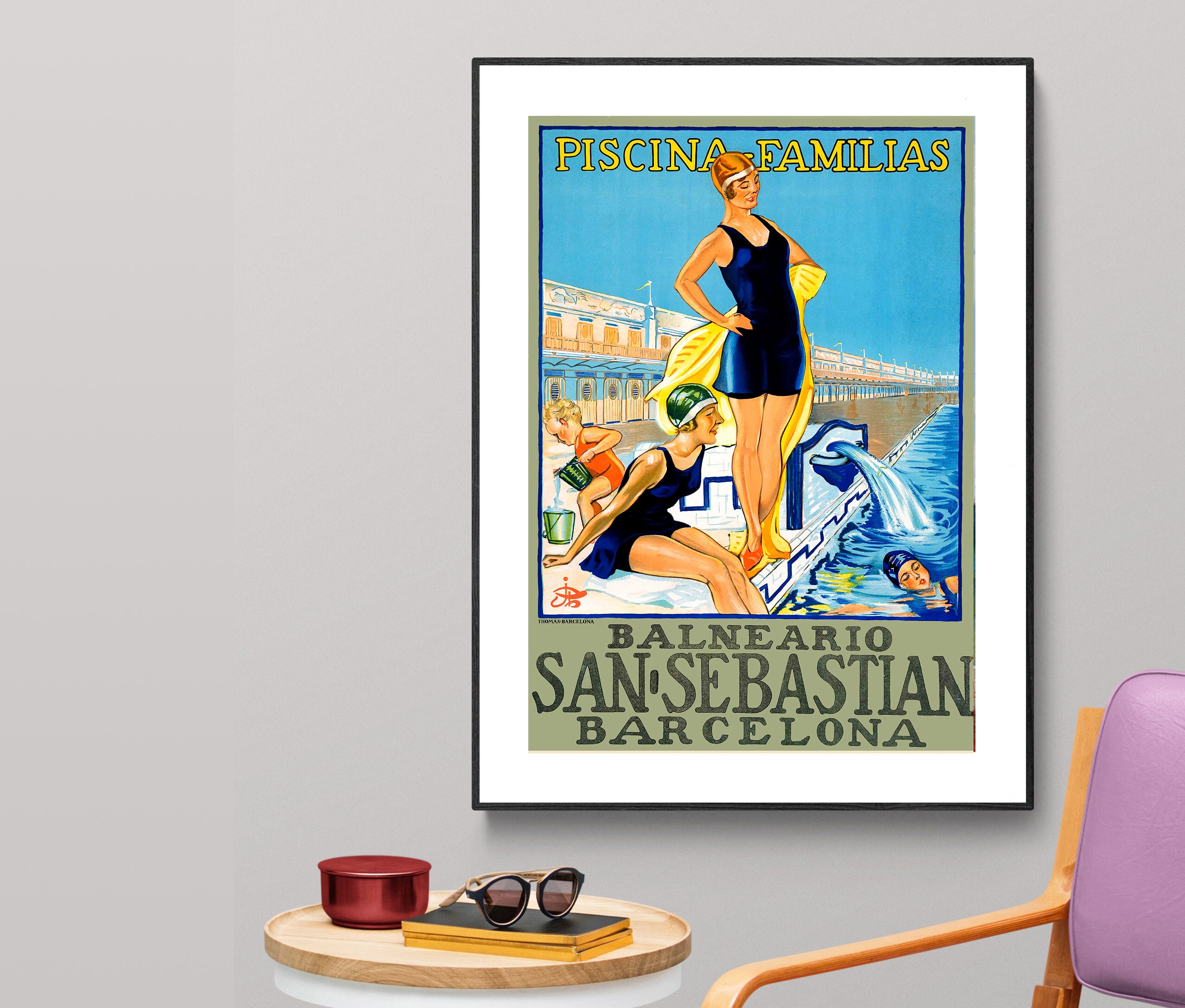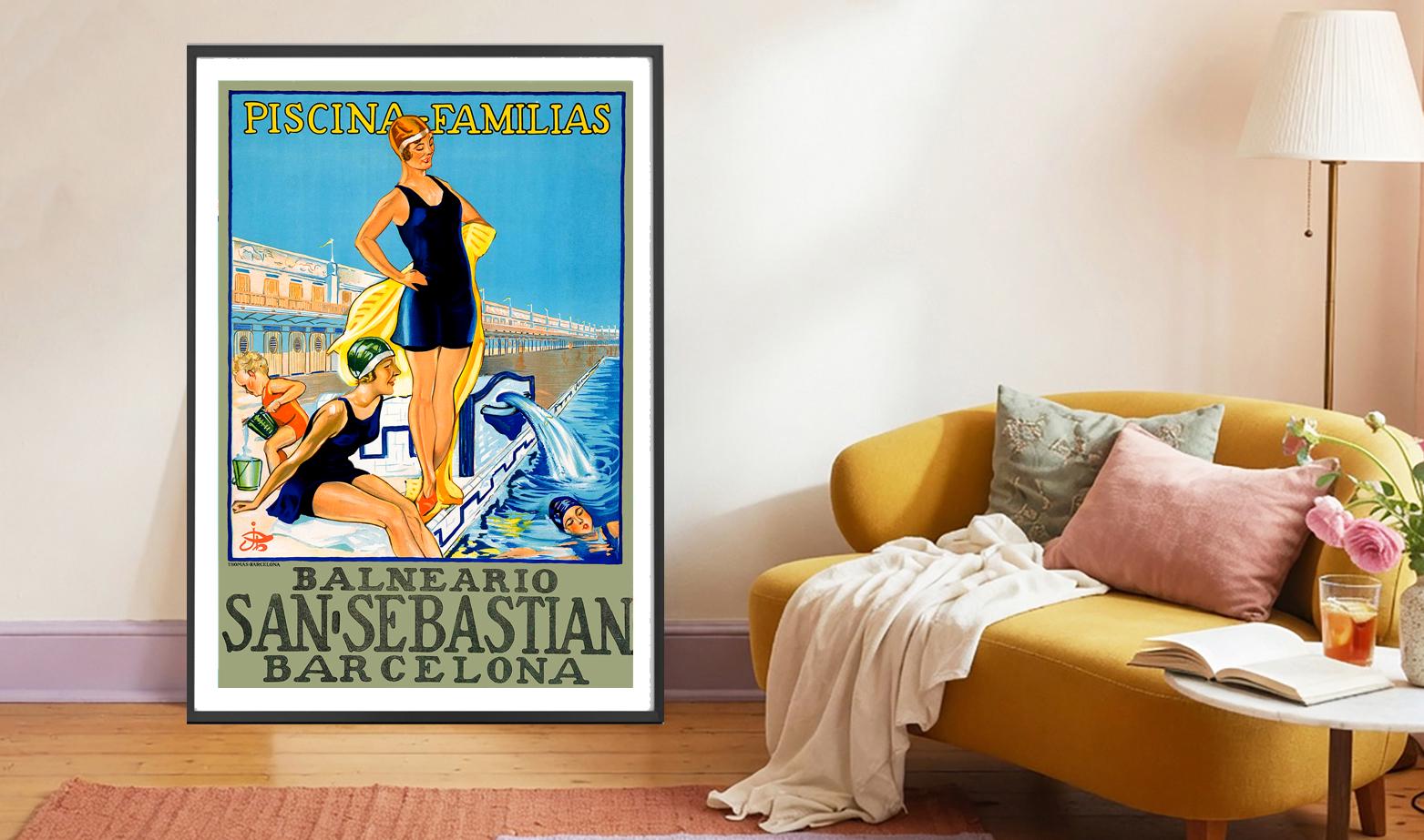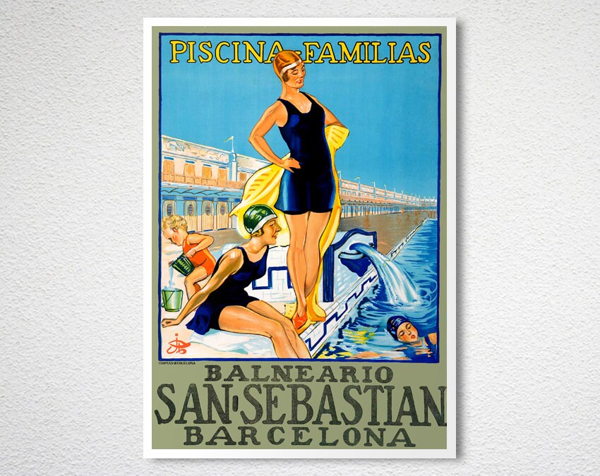 Balneario Barcelona San Sebastian Vintage Travel Poster - Poster Paper or Canvas Print / Gift Idea / Wall Decor