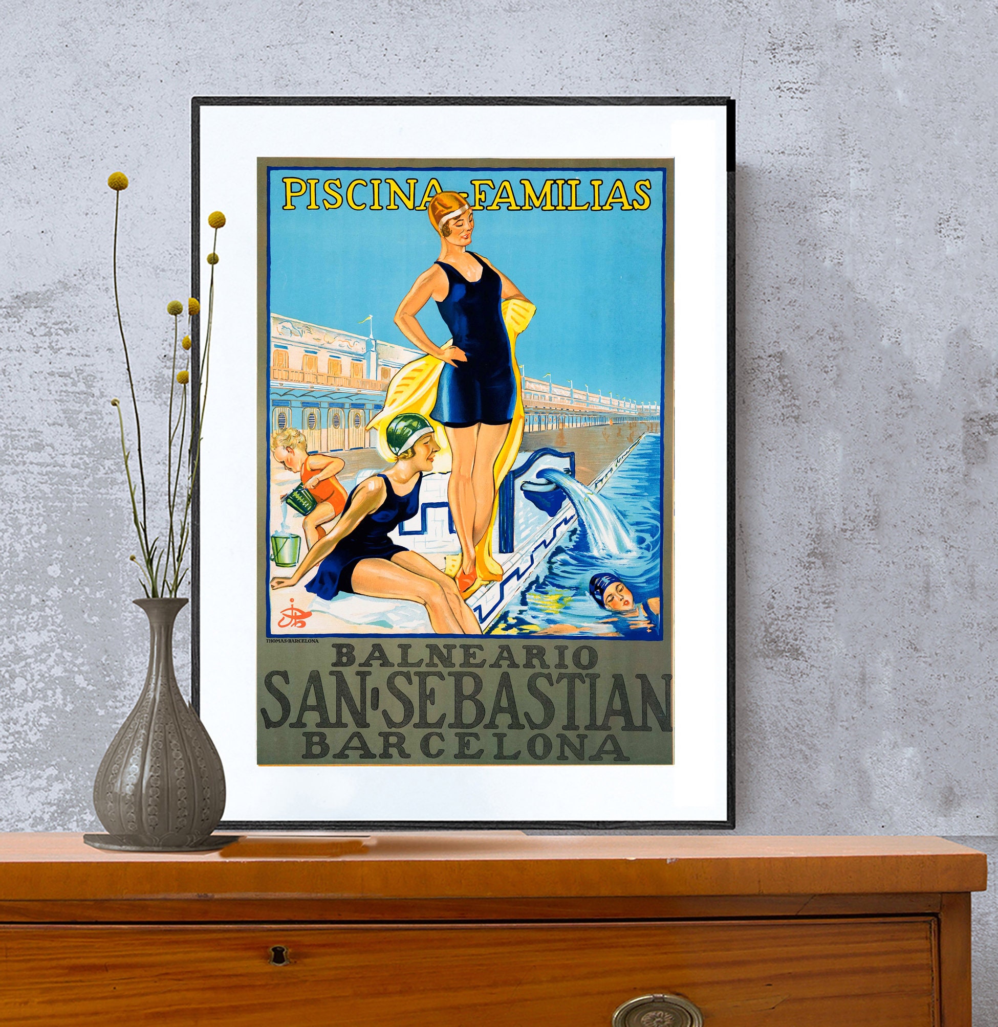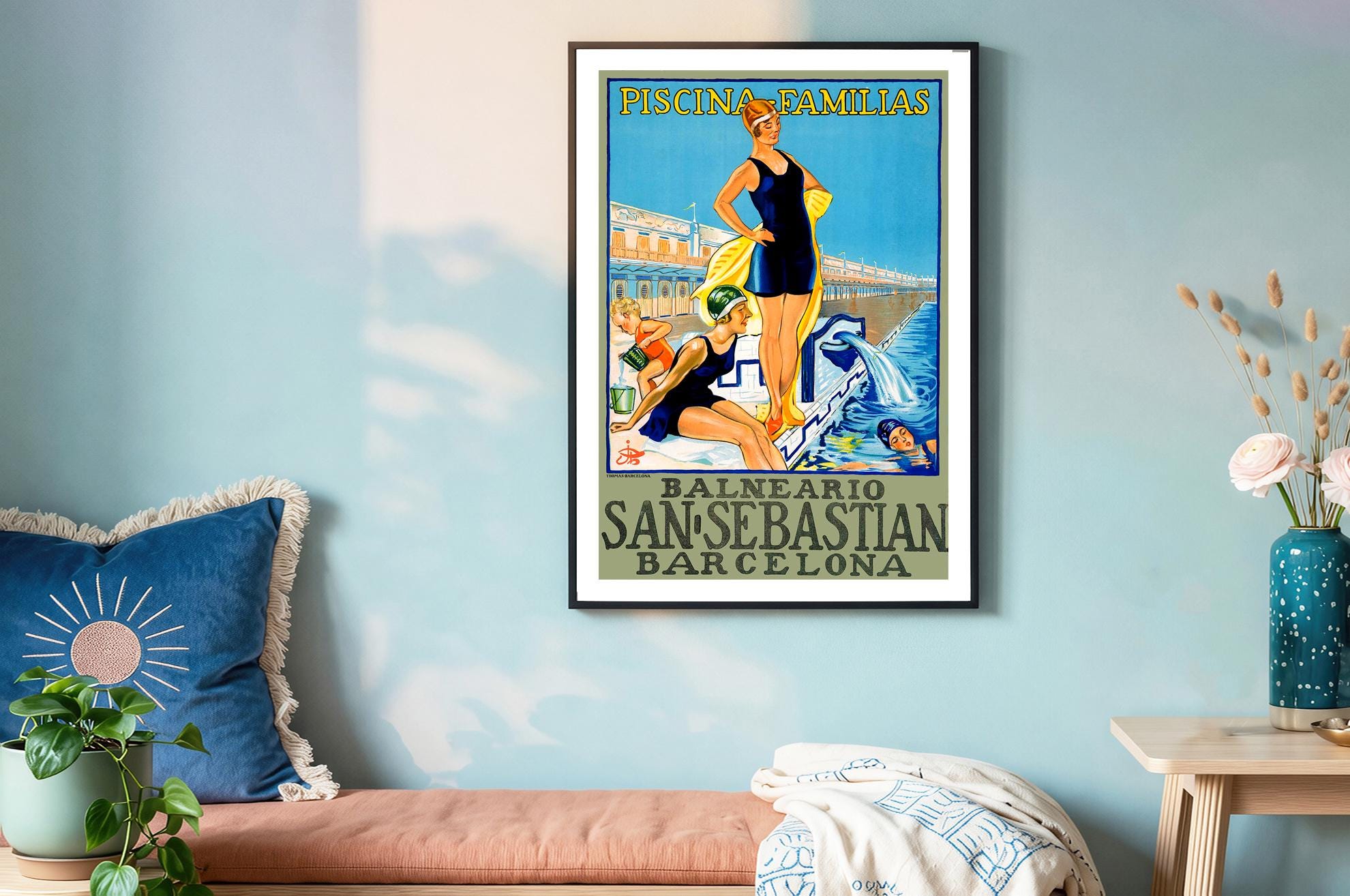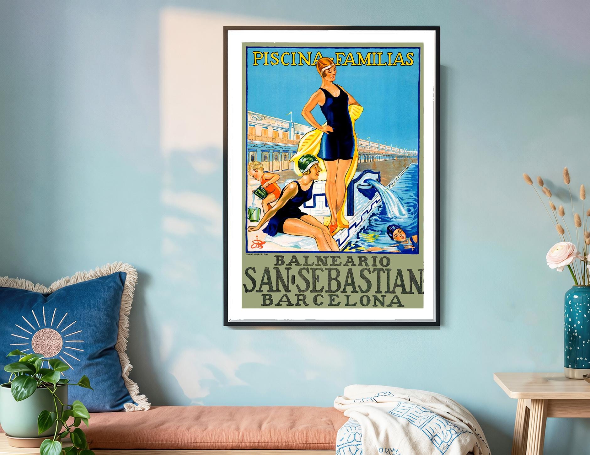 Balneario Barcelona San Sebastian Vintage Travel Poster - Poster Paper or Canvas Print / Gift Idea / Wall Decor
