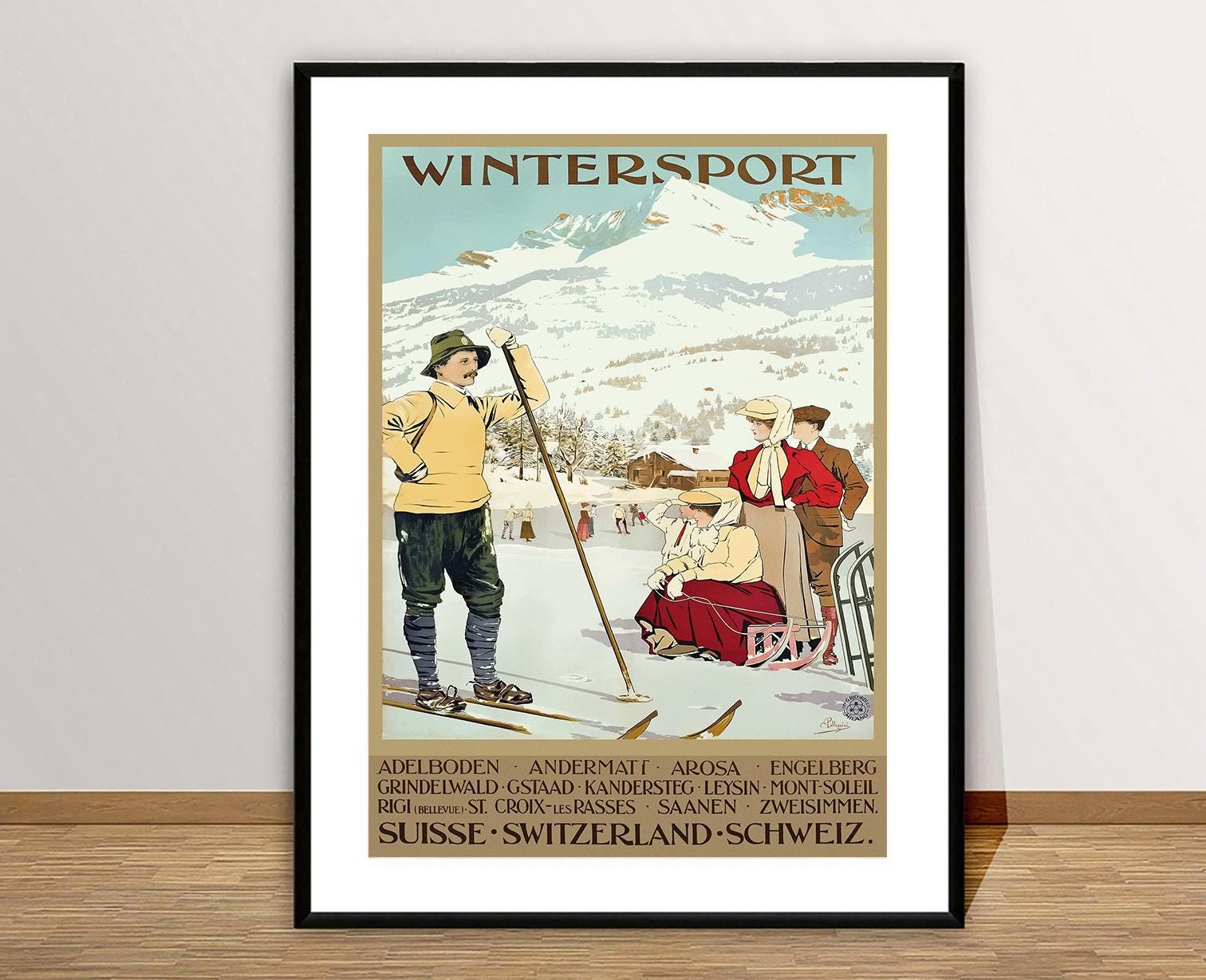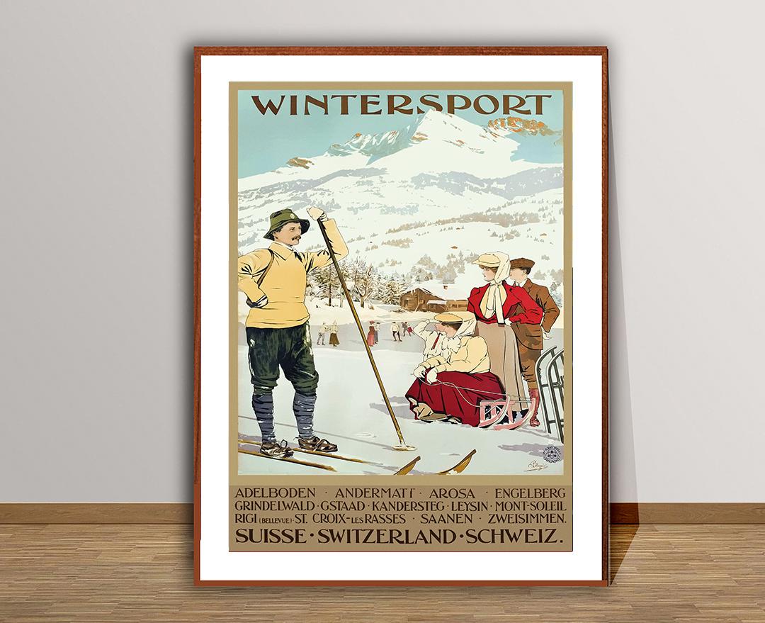 Wintersport Suisse Vintage Travel Poster - Art Print - Poster Paper or Canvas Print
