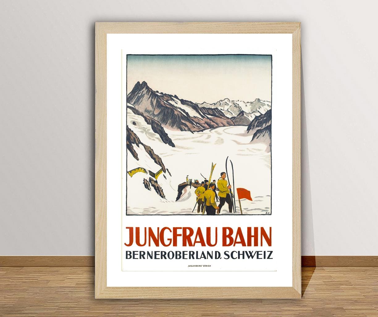 Vintage Jungfrau Bahn Ski Poster: Berner Oberland Schweiz