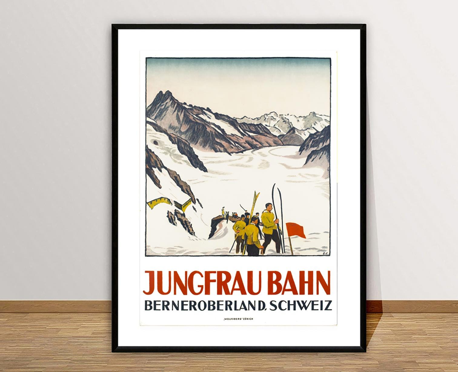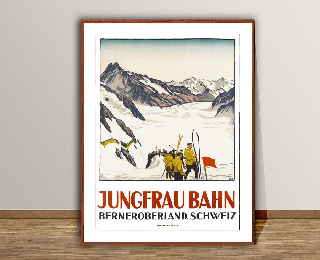 Jungfrau Bahn, Berner Oberland Schweiz Vintage Ski Poster - Poster Paper or Canvas Print / Gift Idea / Wall Decor