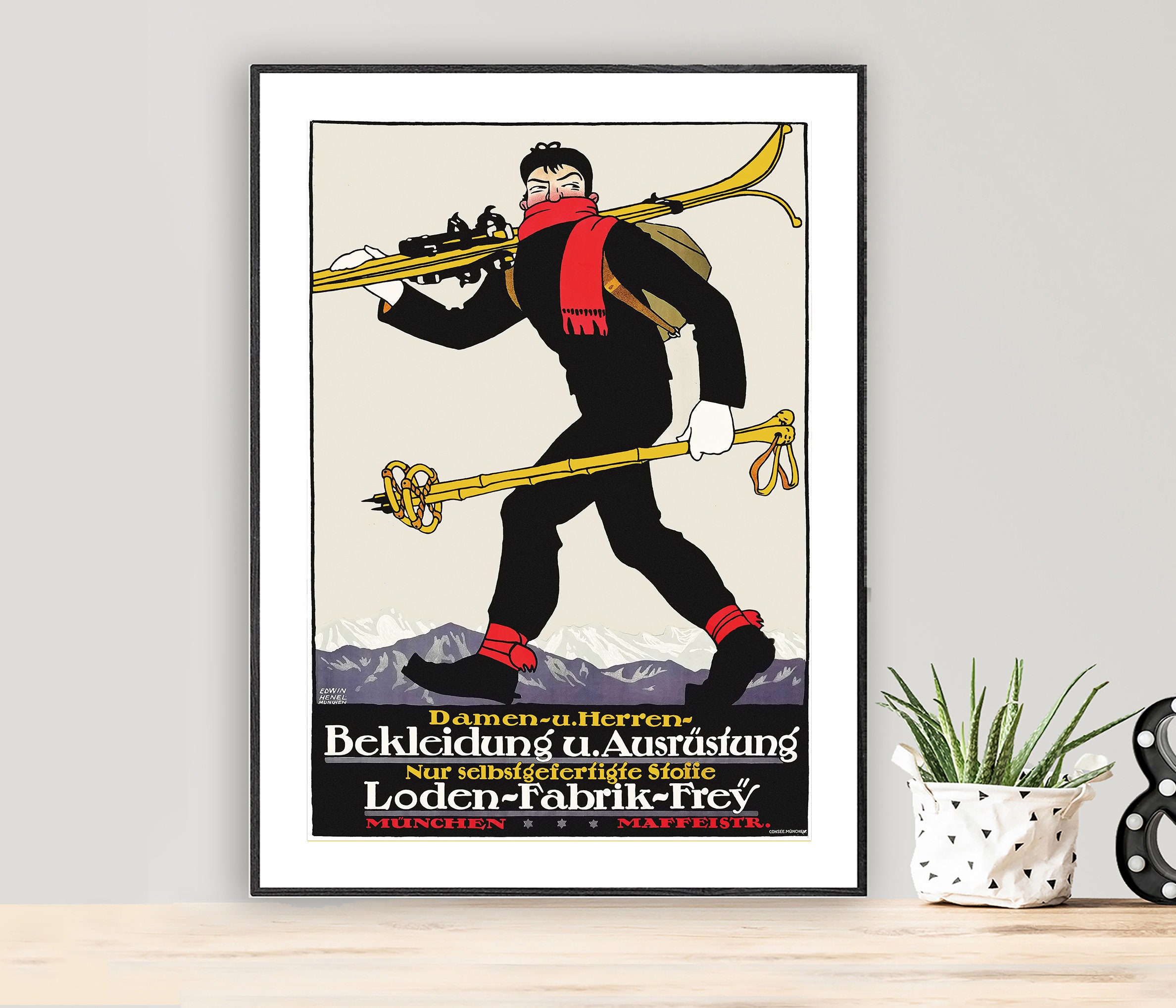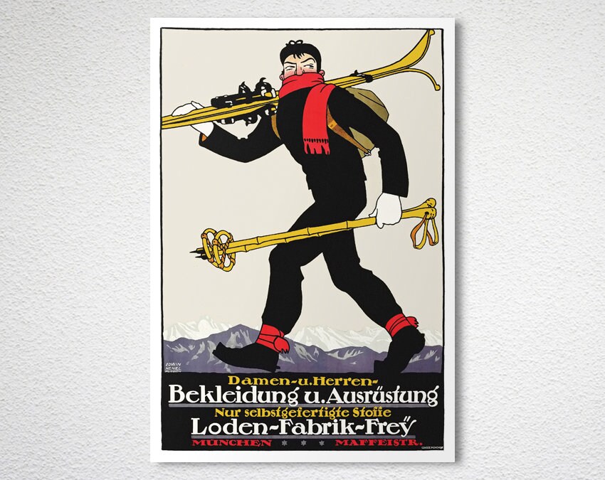 GICLEE printed on high quality paper, cotton canvas or adhesive sticker paper. A high quality reproduction of vintage ski poster. Professional packaging for safe shipping. All images (dimensions) include a white border. (The white border can be removed. Please write a note when ordering.)