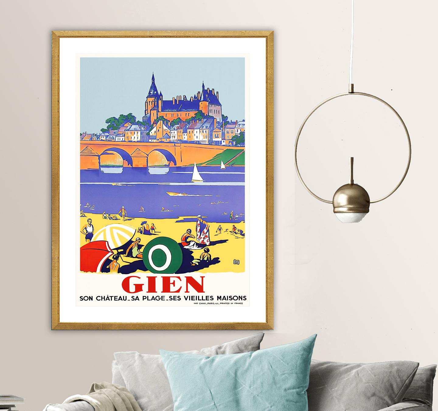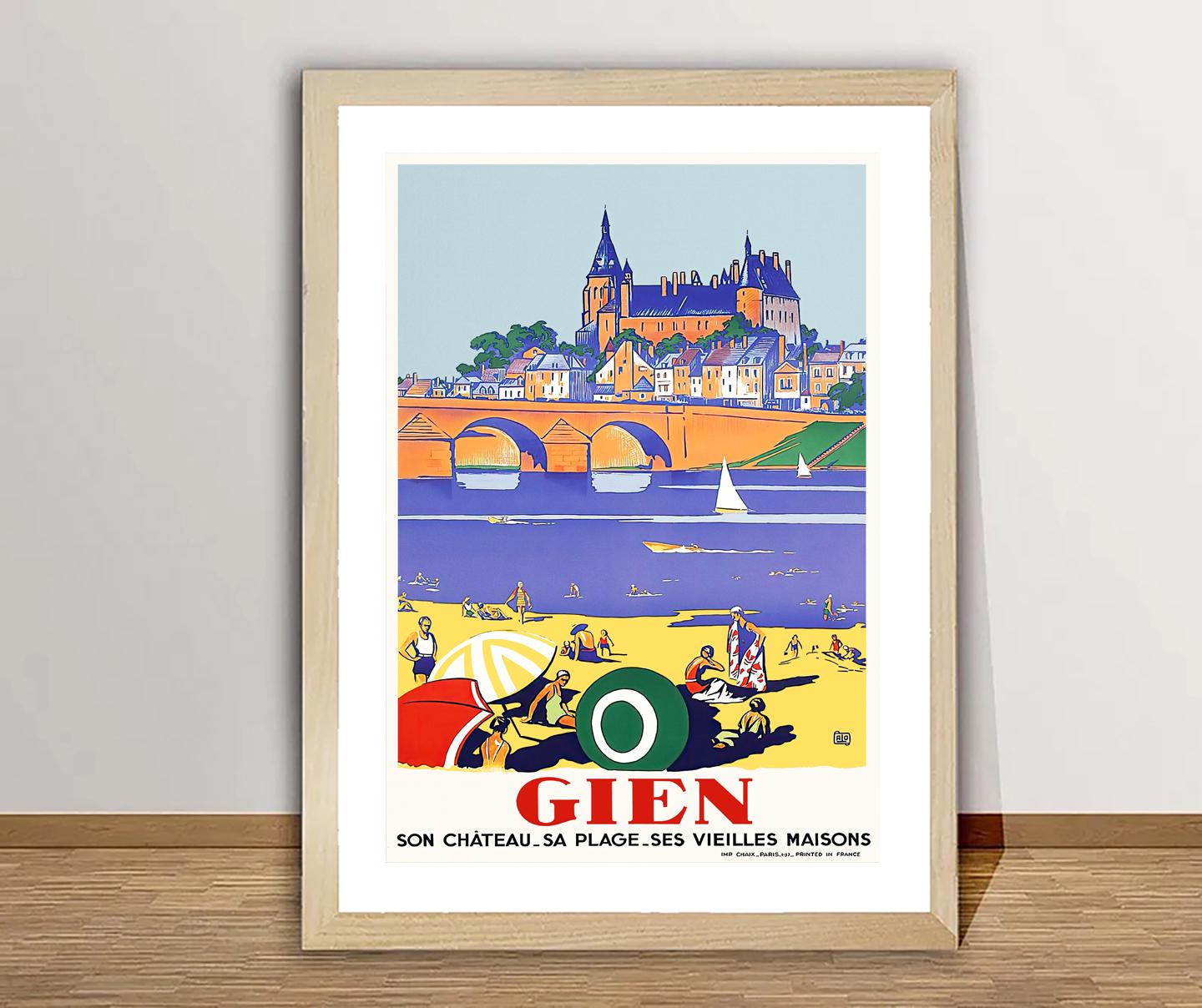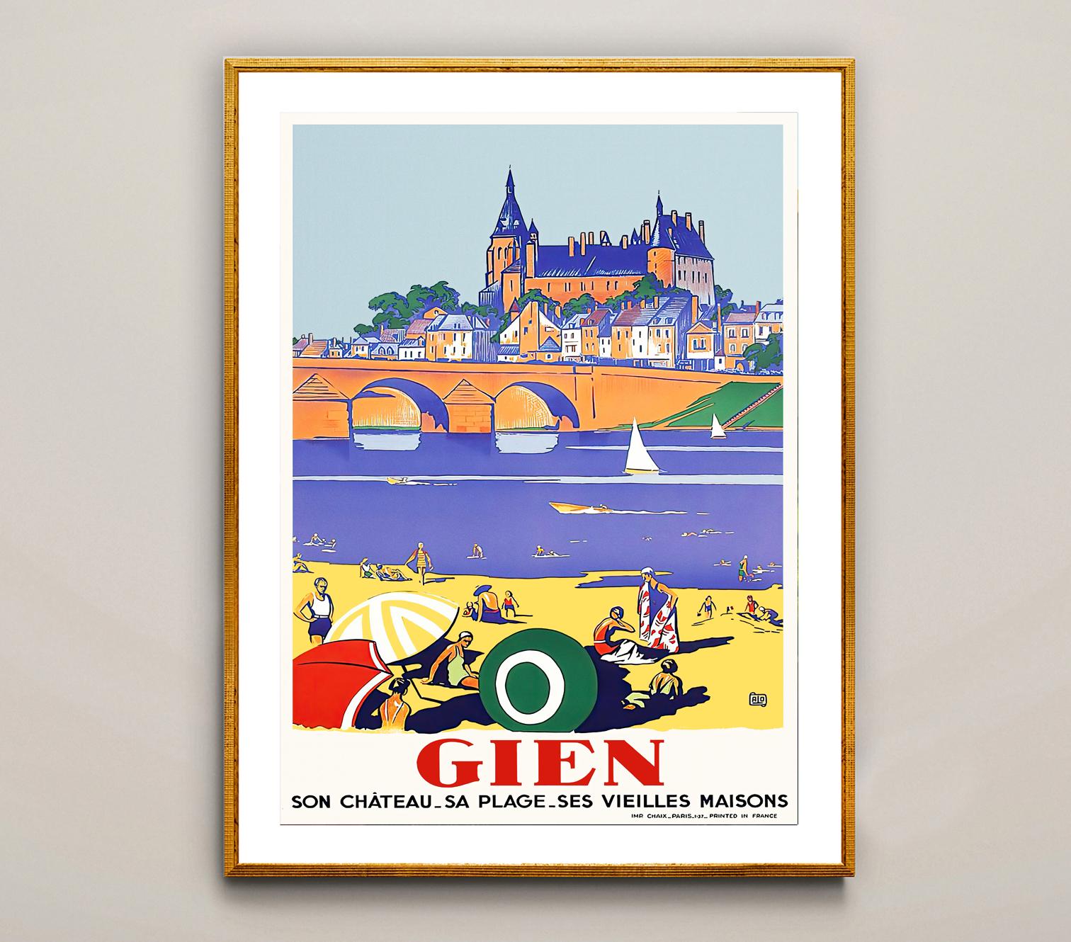 Gien, Son Chateau, Sa Plage, Ses Vieilles Maisons, France Vintage Travel Poster - Poster Paper or Canvas Print / Gift Idea