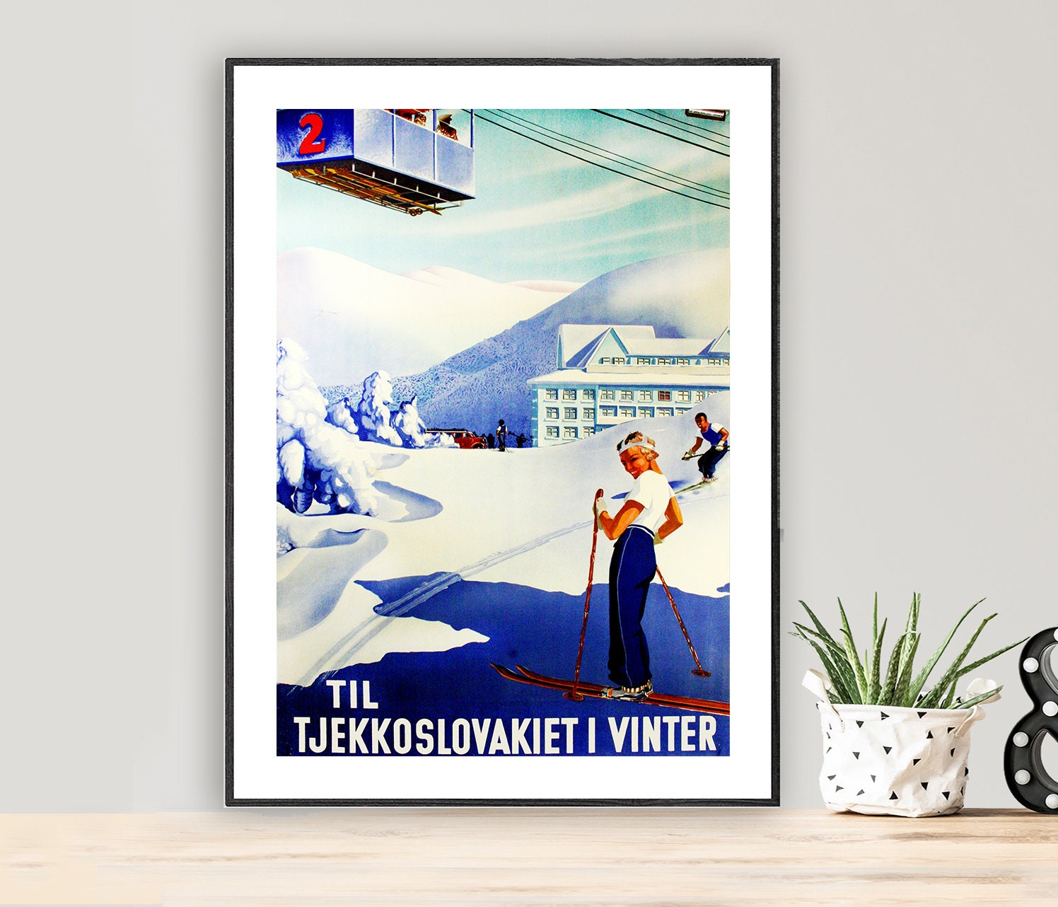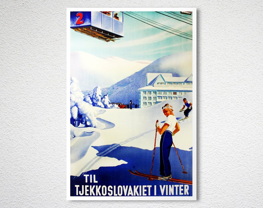 Vintage Czechoslovakia Ski Poster: Travel Wall Decor