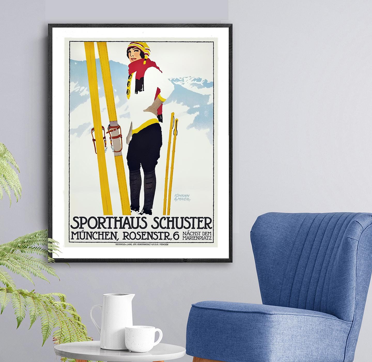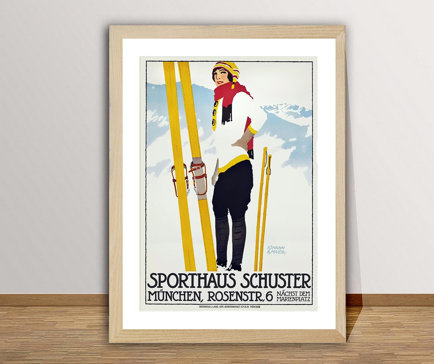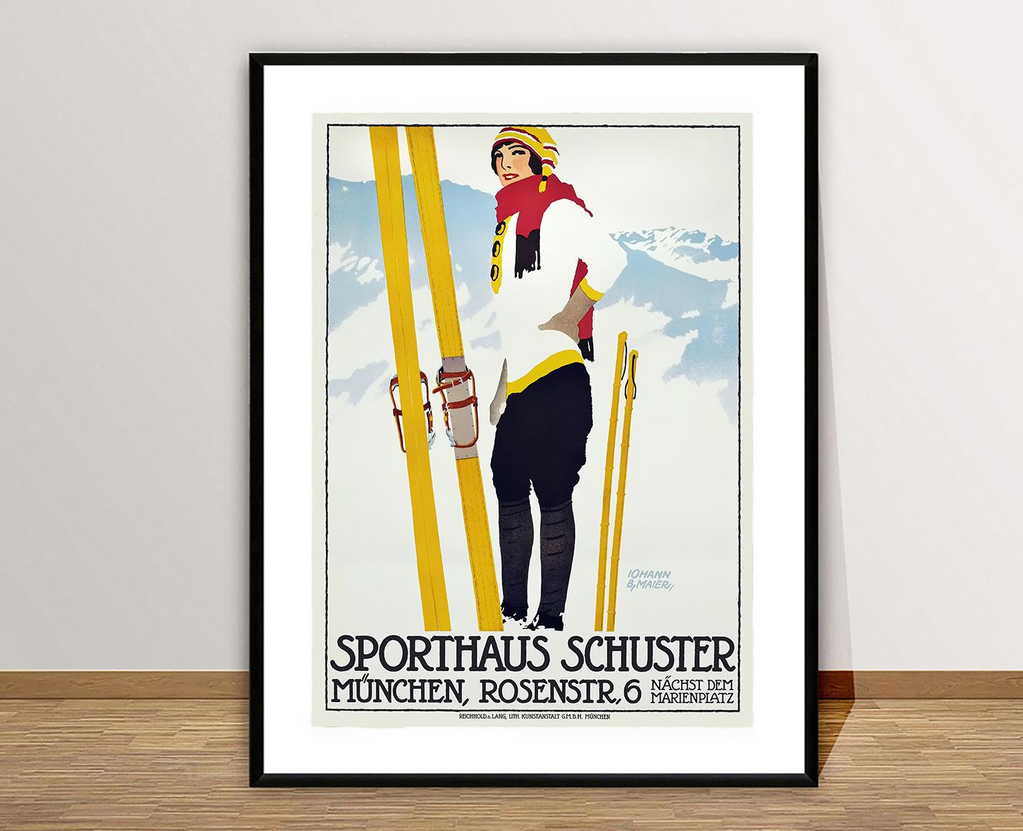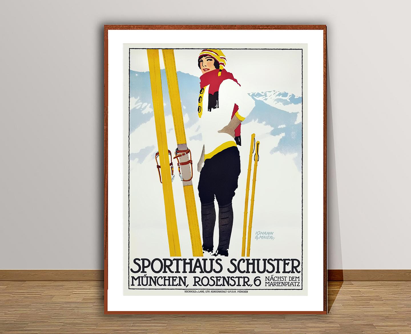 Sporthaus Schuster, München Vintage Travel Poster - Poster Paper or Canvas Giclee Print