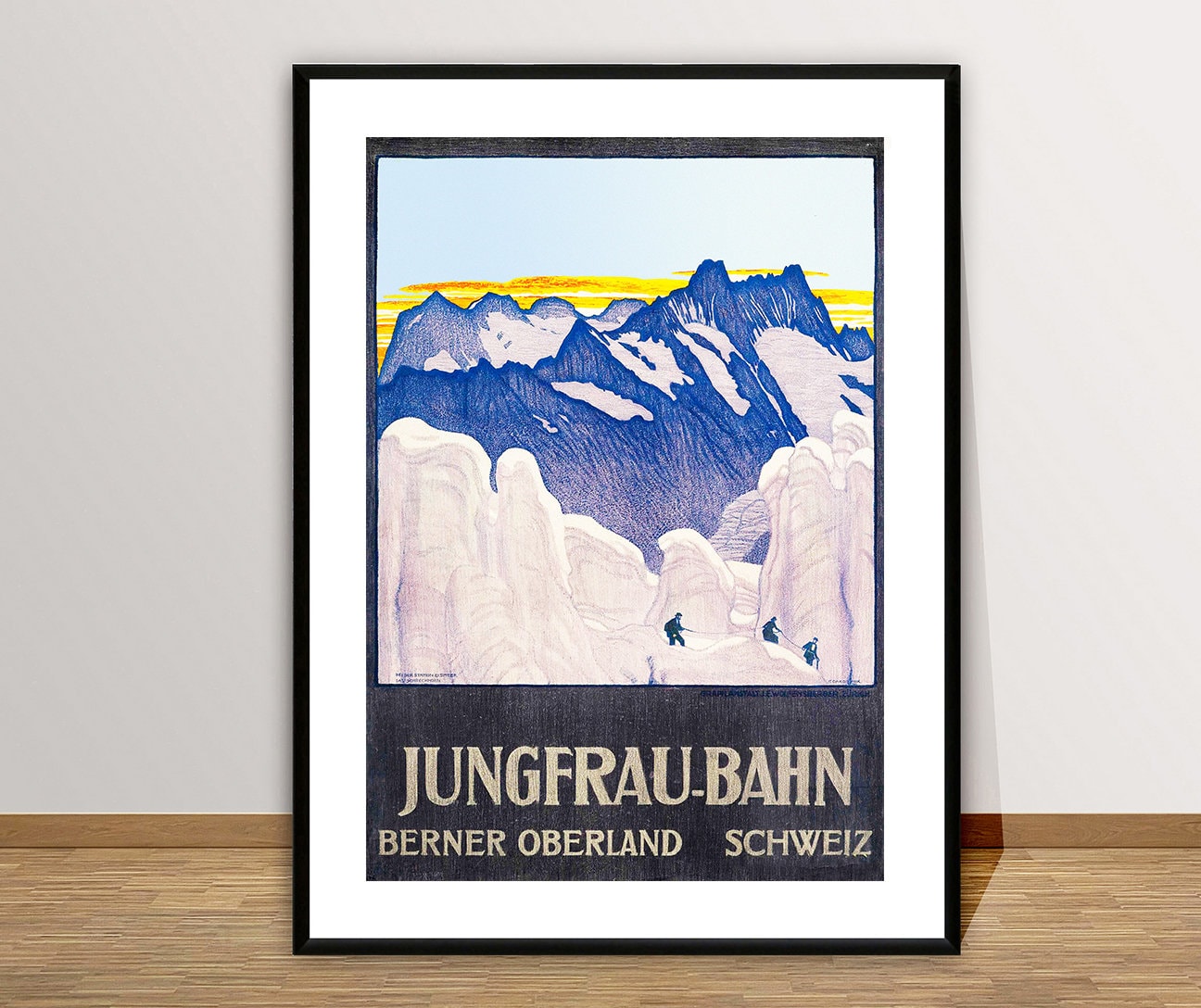 Jungfrau Bahn Vintage Travel Poster: Berner Oberland Print