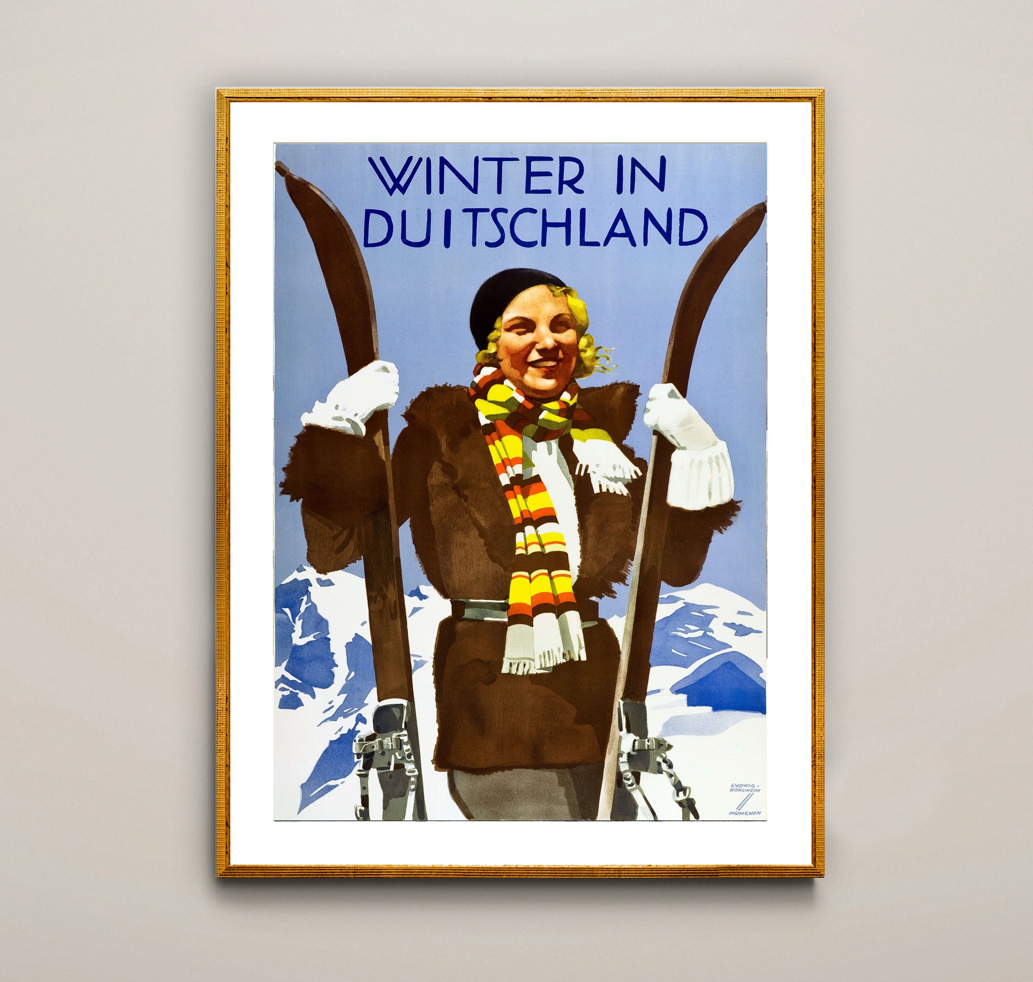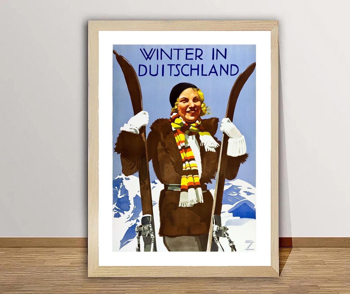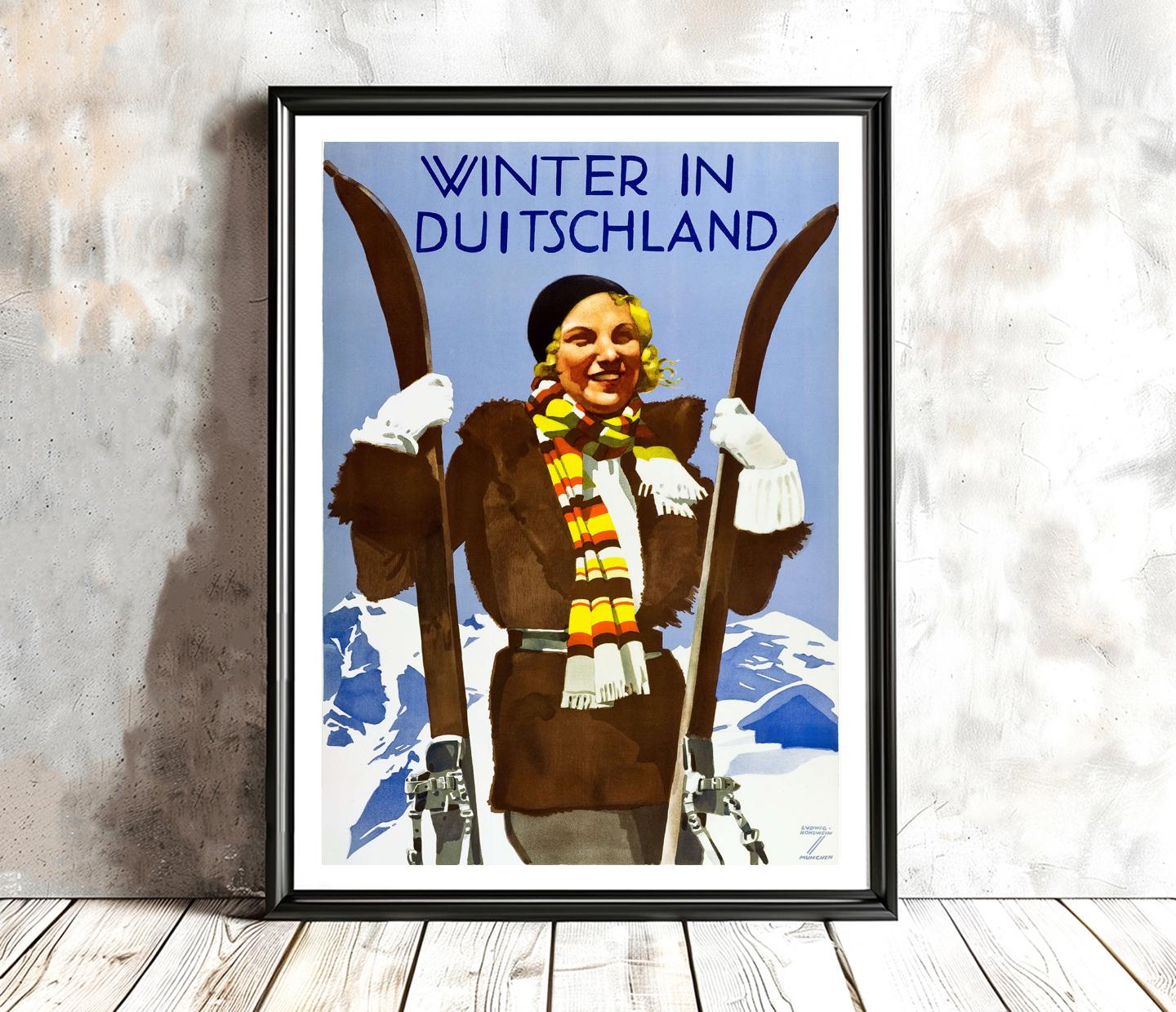 Winter in Deutschland Vintage Ski Poster: Travel Wall Art