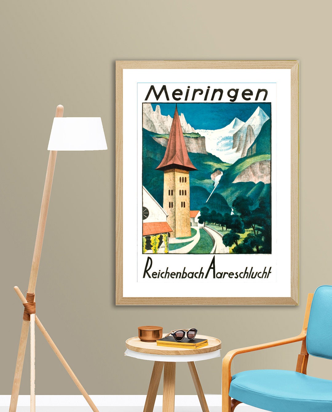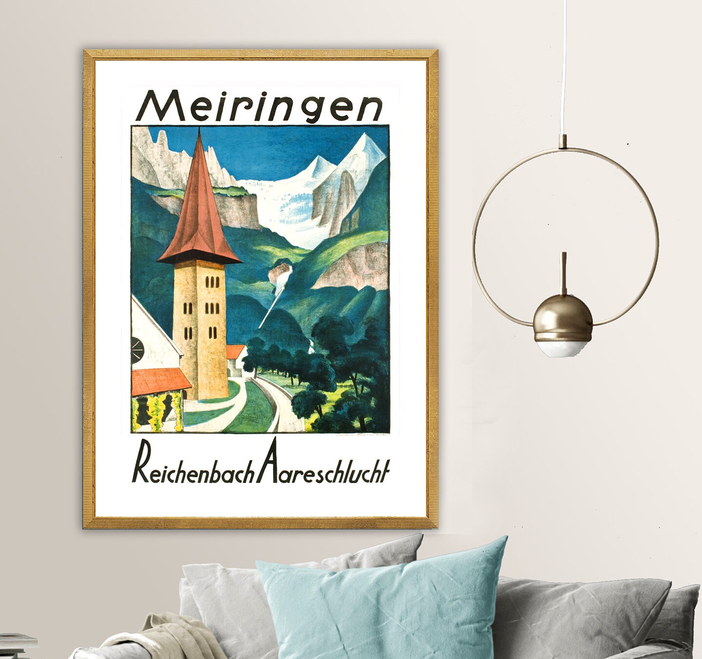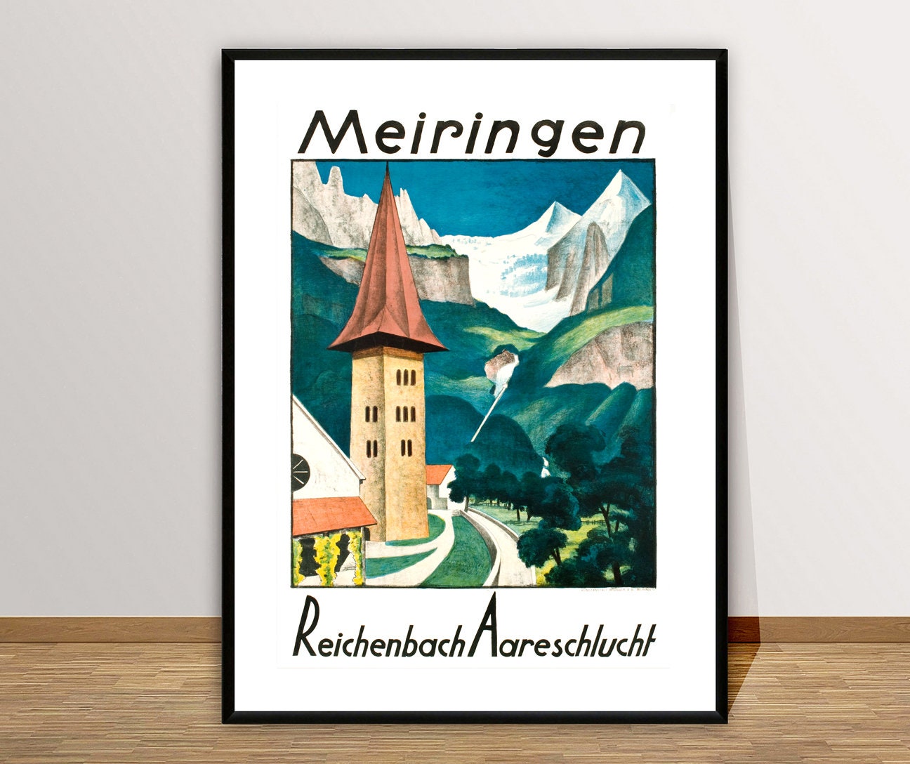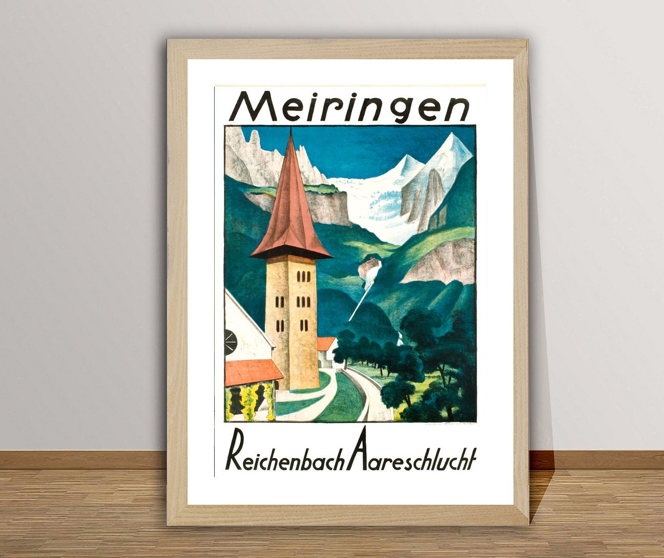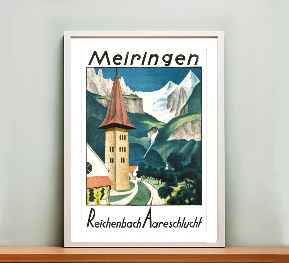 Meiringen Reichenbach Aareschlucht Vintage Travel Poster