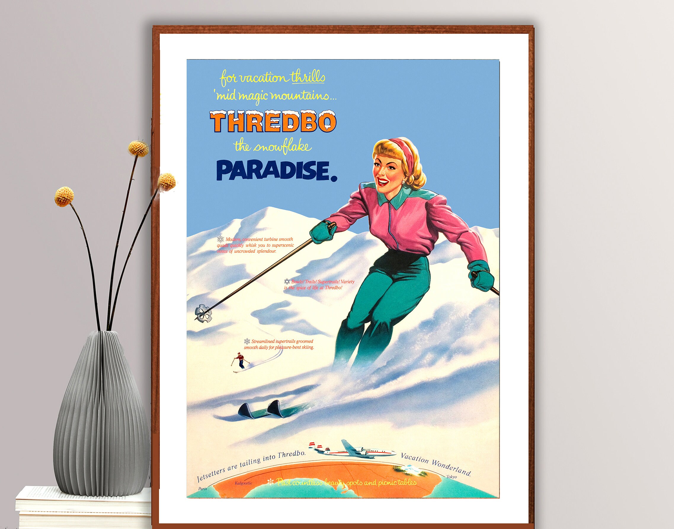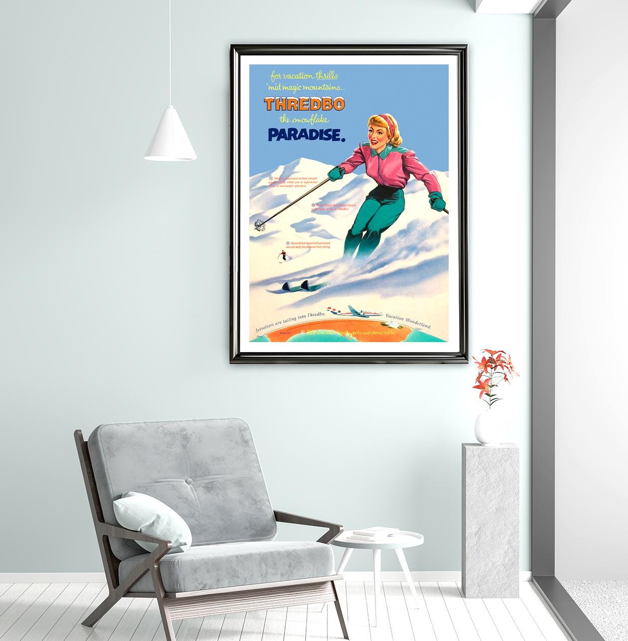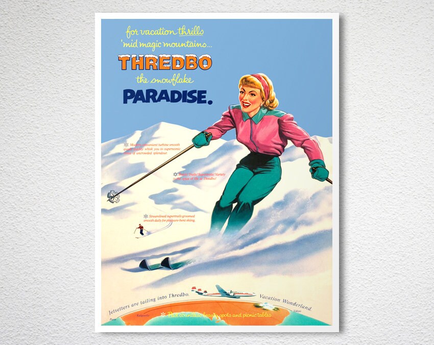 Printed on high quality paper, cotton canvas or adhesive sticker paper. A high quality reproduction of vintage ski poster. Professional packaging for safe shipping. All images (dimensions) include a white border. (The white border can be removed. Please write a note when ordering.)