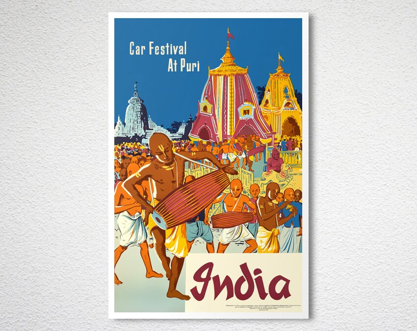 India Car Festival at Puri Vintage Travel Poster - Poster Print or Canvas Print