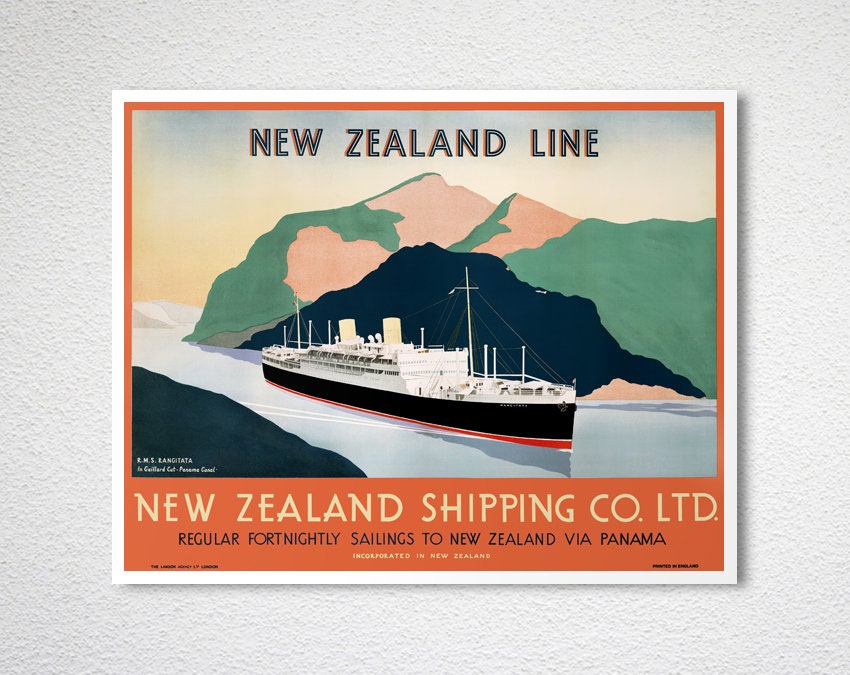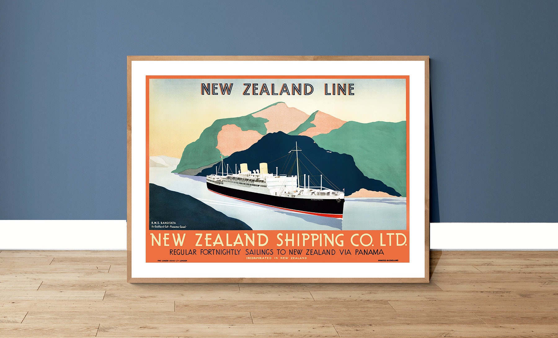 New Zealand Line Vintage Travel Poster: Shipping Company Art