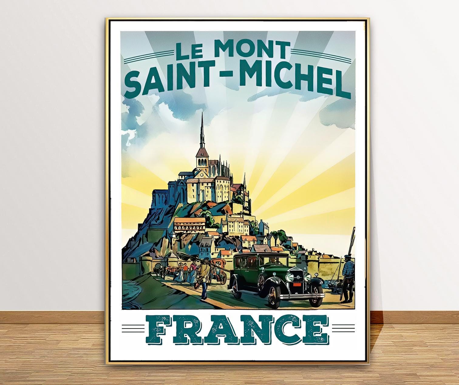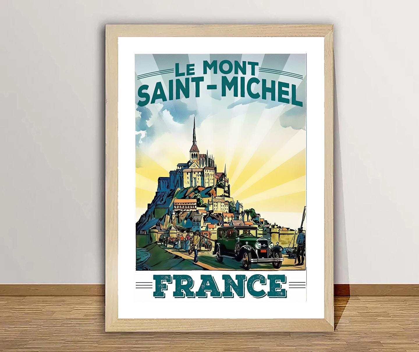 Le Mont Saint Michel, France Vintage Travel Poster - Poster Paper or Canvas Print