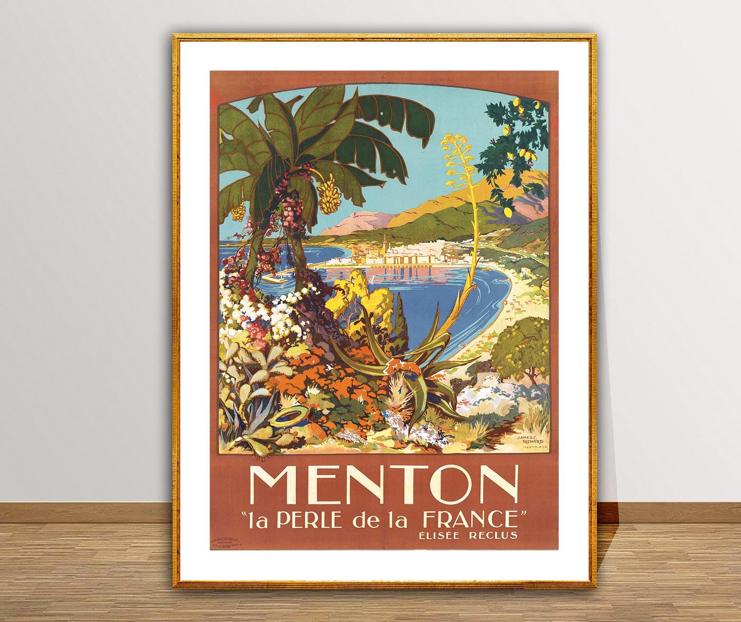Menton La Perle de la France Vintage Travel Poster - Poster Paper or Canvas Print / Gift Idea / Wall Decor