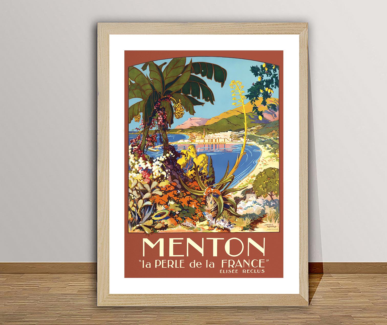 Menton La Perle de la France Vintage Travel Poster - Poster Paper or Canvas Print