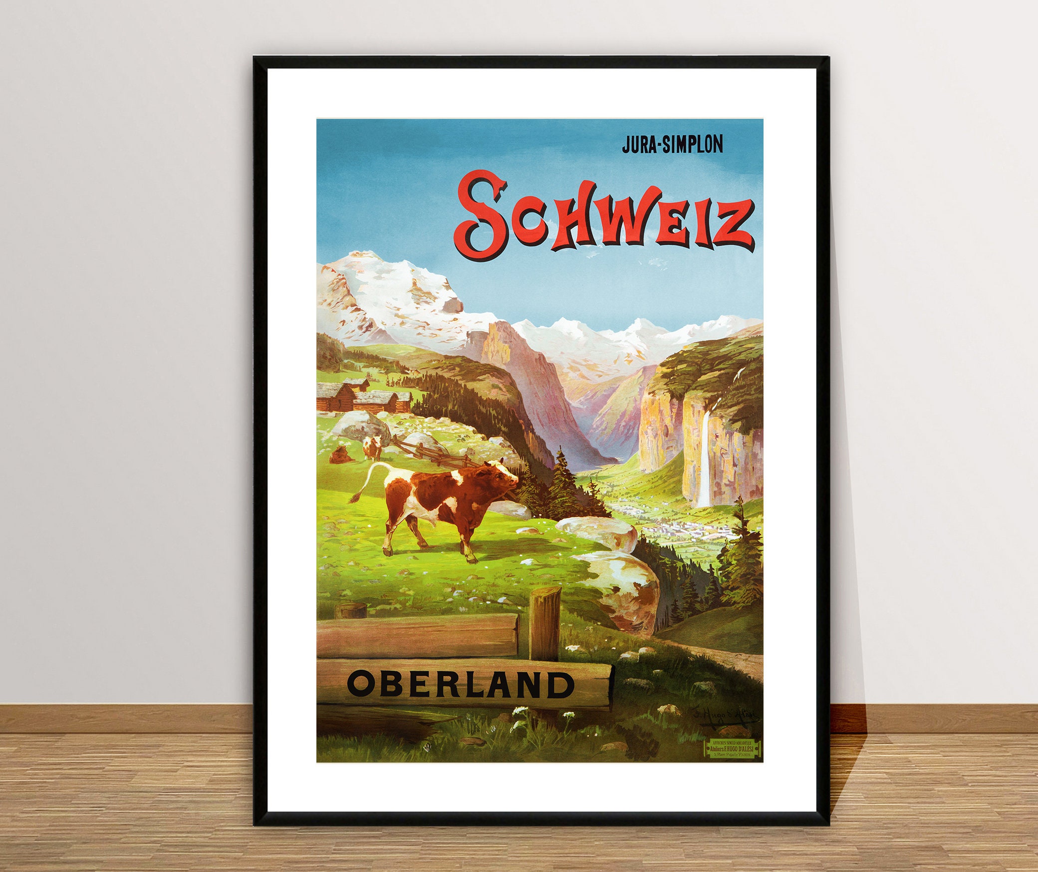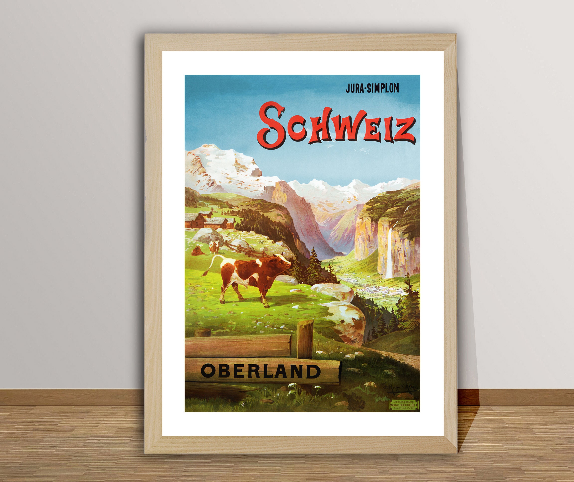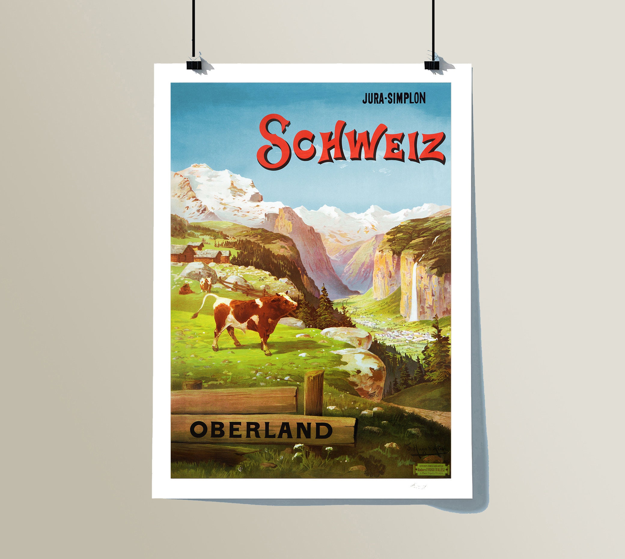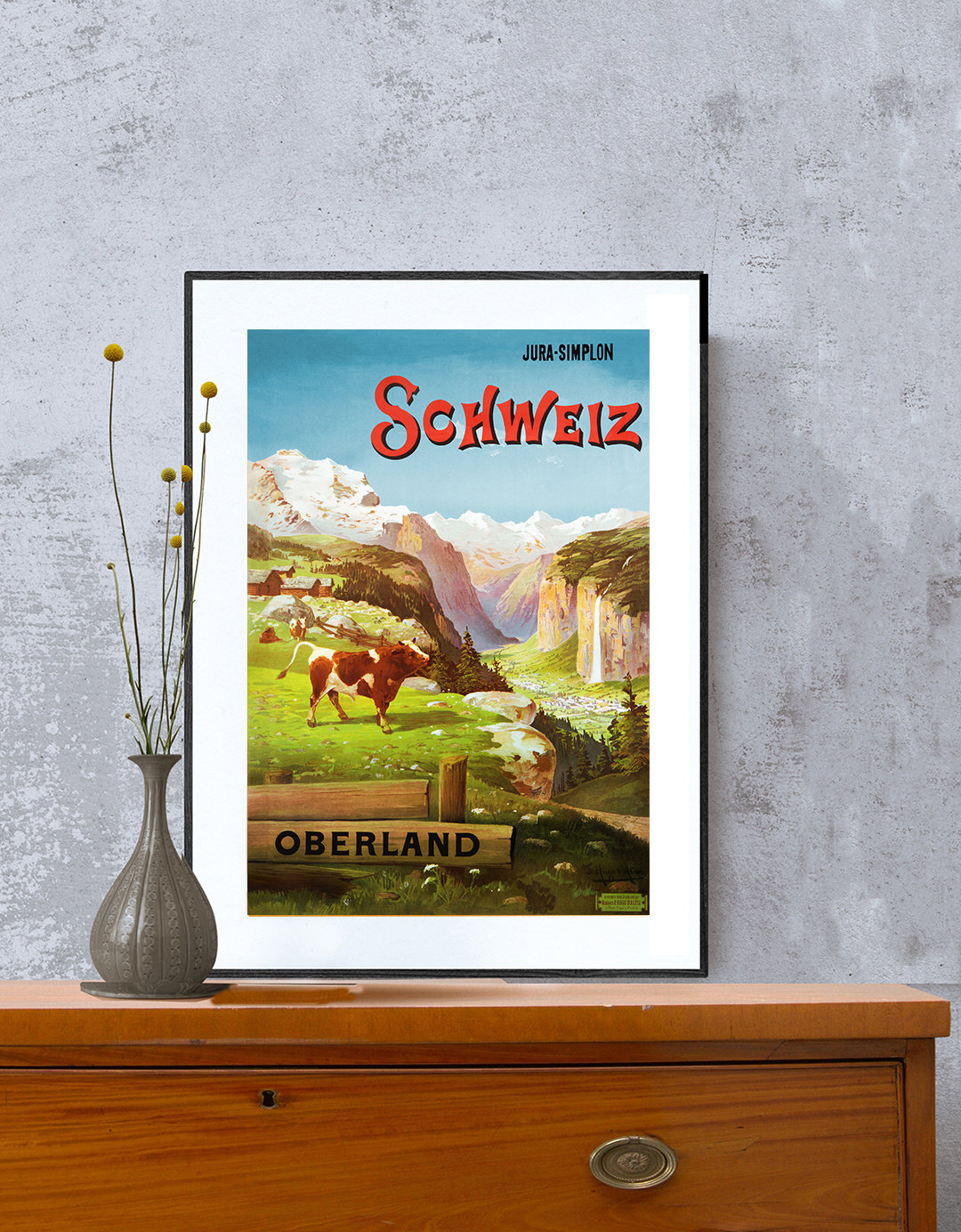 Schweiz Oberland, Jura Simplon Vintage Travel Poster- Wall Decor - Poster Paper or Canvas Print