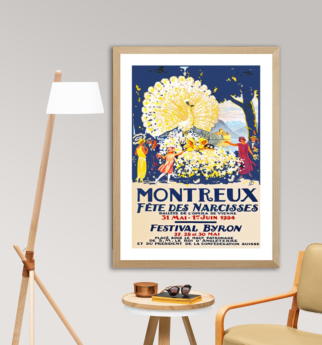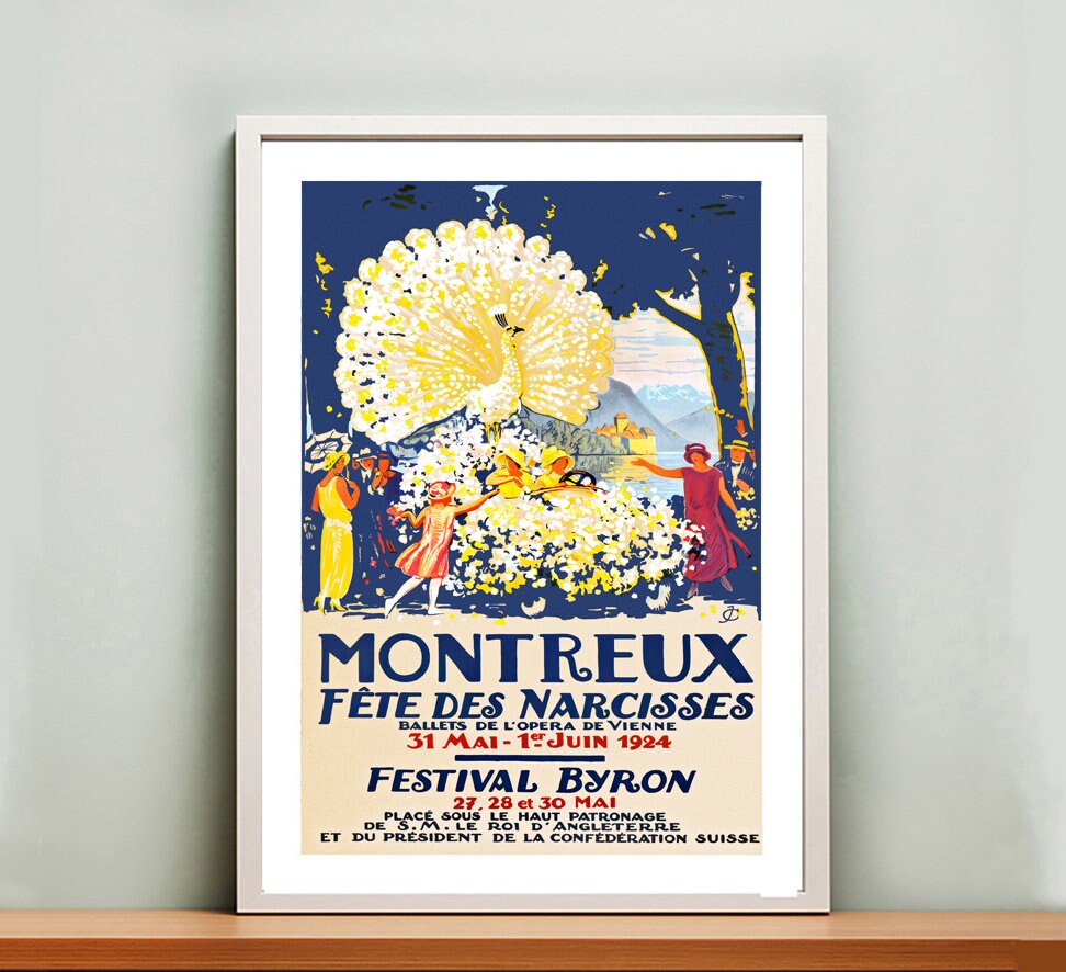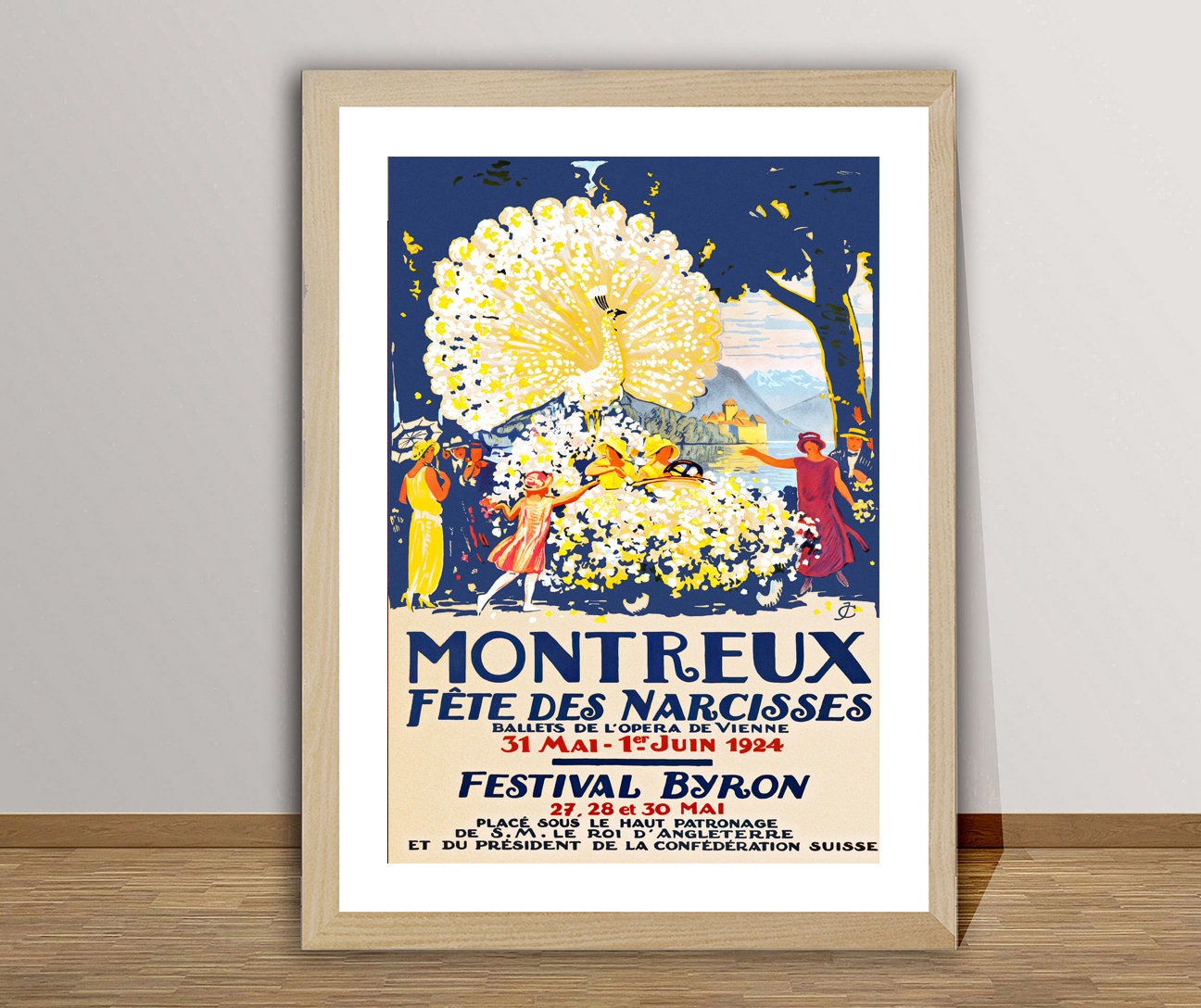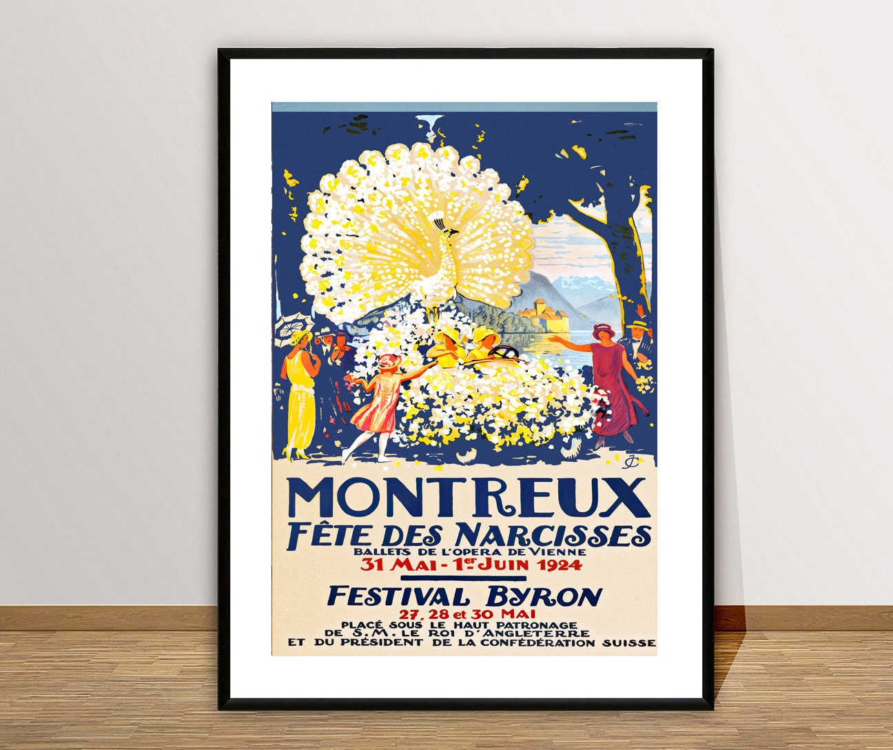 Montreux, Fête des Narcisses Vintage Travel Poster - Poster Paper or Canvas Print / Gift Idea / Wall Decor