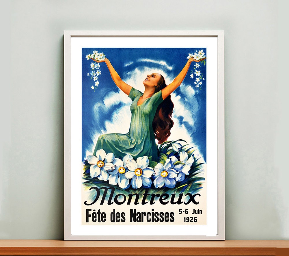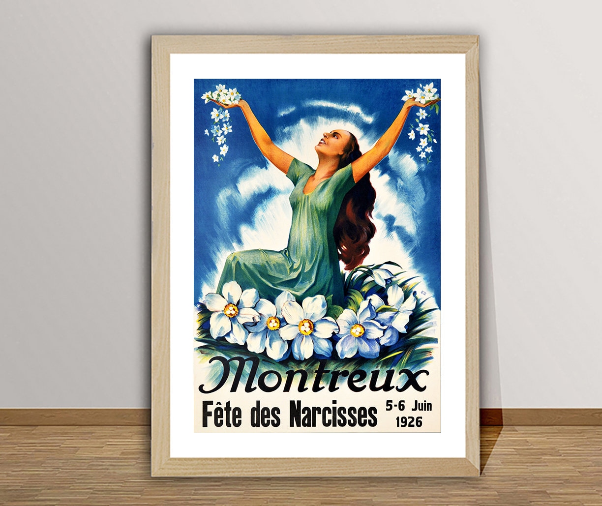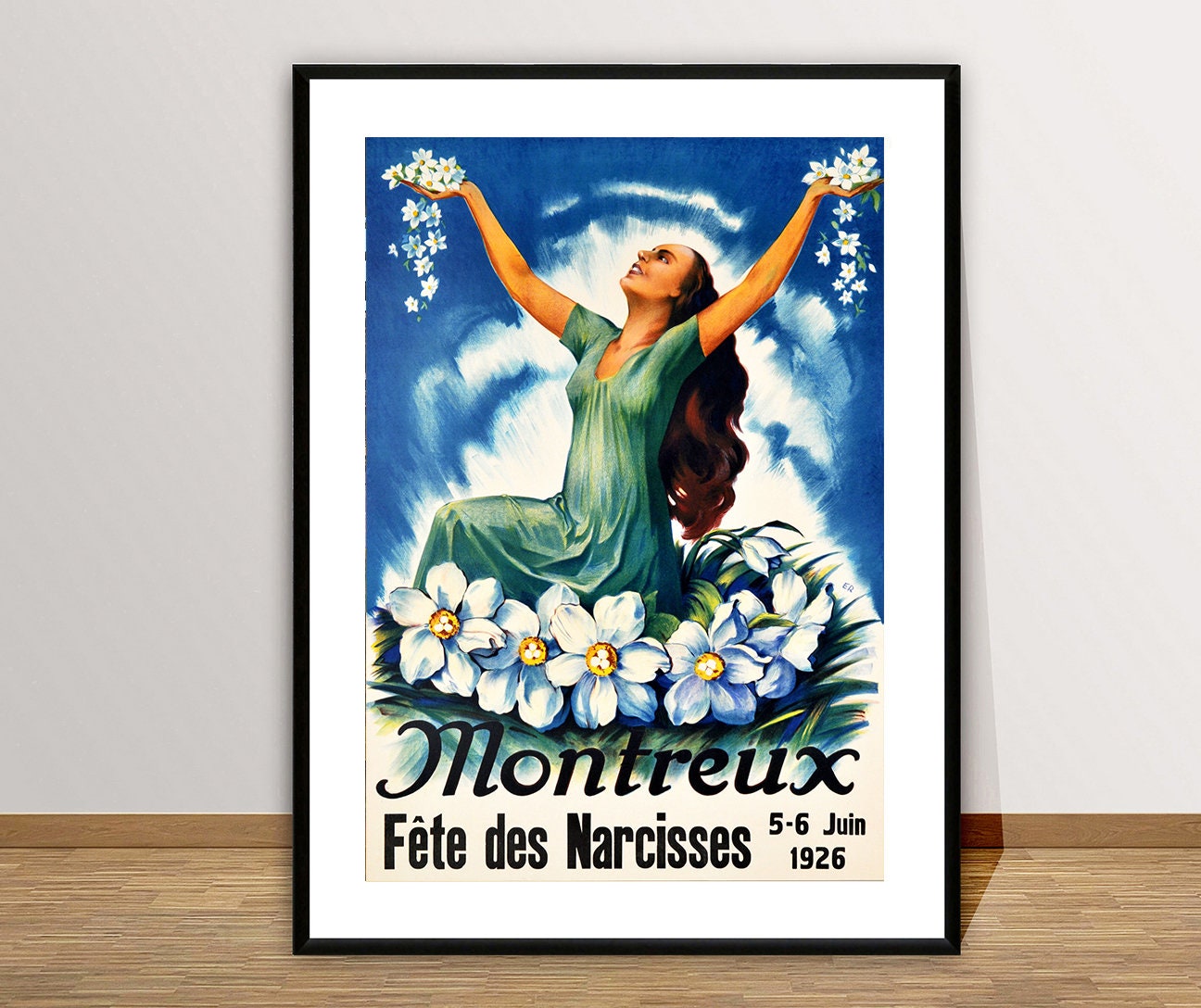 Montreux, Fête des Narcisses 1926, Suisse Vintage Travel Poster - Poster Paper or Canvas Print