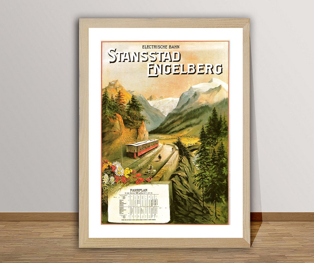 Electrische Bahn Stansstad Engelberg, Schweiz Vintage Travel Poster - Poster Paper or Canvas Print / Gift Idea / Wall Decor