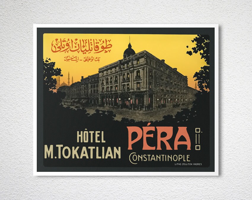 Pera Hotel M. Tokatlian Constantinople Vintage Travel Poster - Poster Paper or Canvas Print
