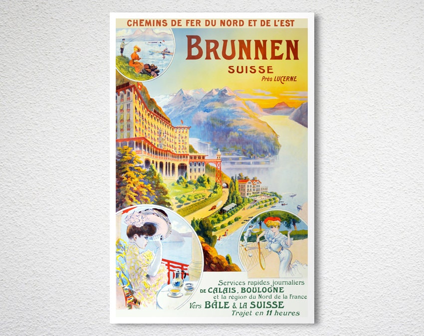 Brunnen Suisse Vintage Travel Poster - Poster Paper or Canvas Print / Gift Idea / Wall Decor