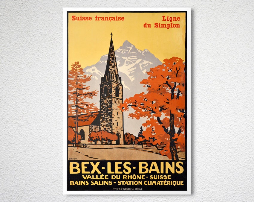 Bex Les Bains, Suisse Vintage Travel Poster - Poster Paper or Canvas Print / Gift Idea / Wall Decor