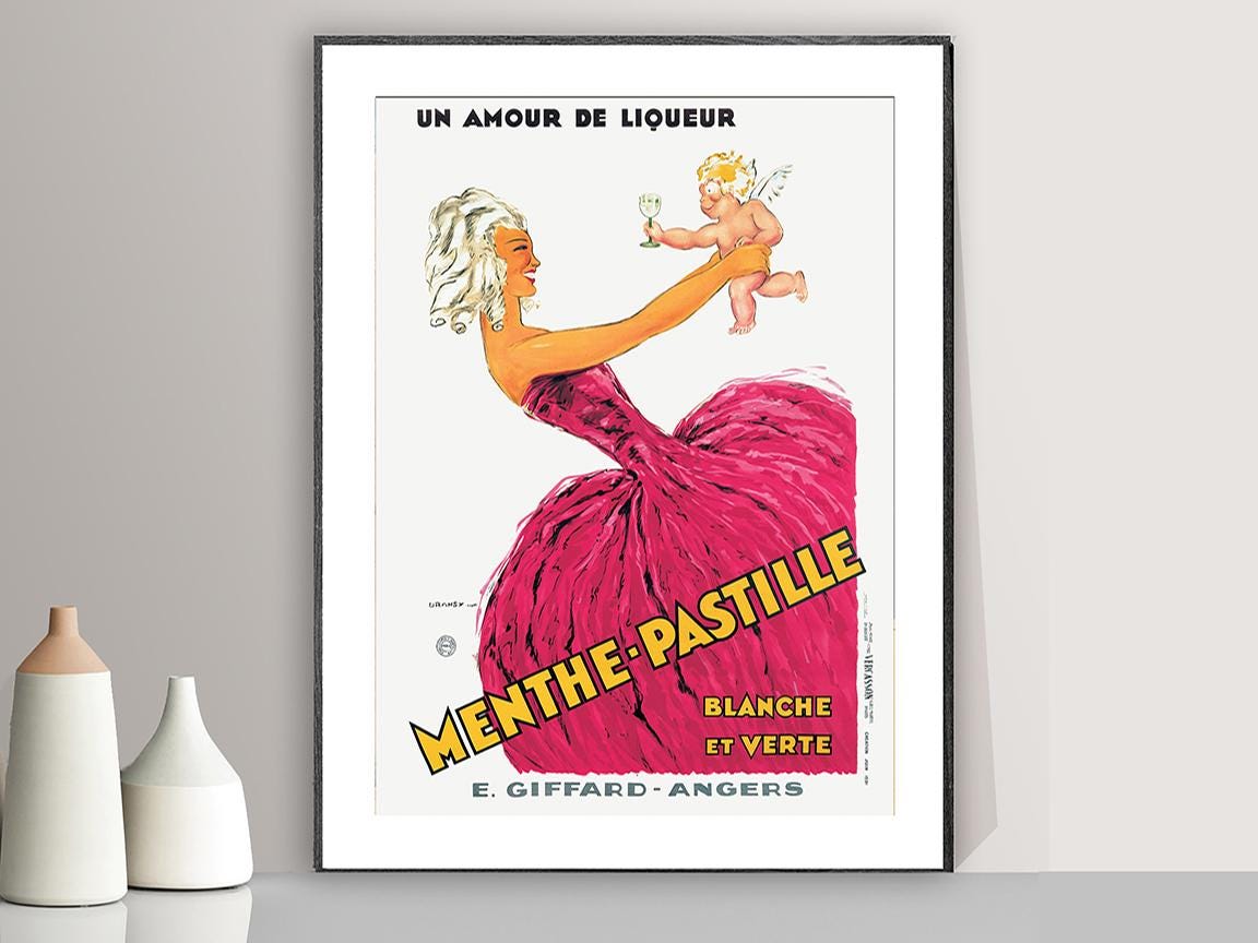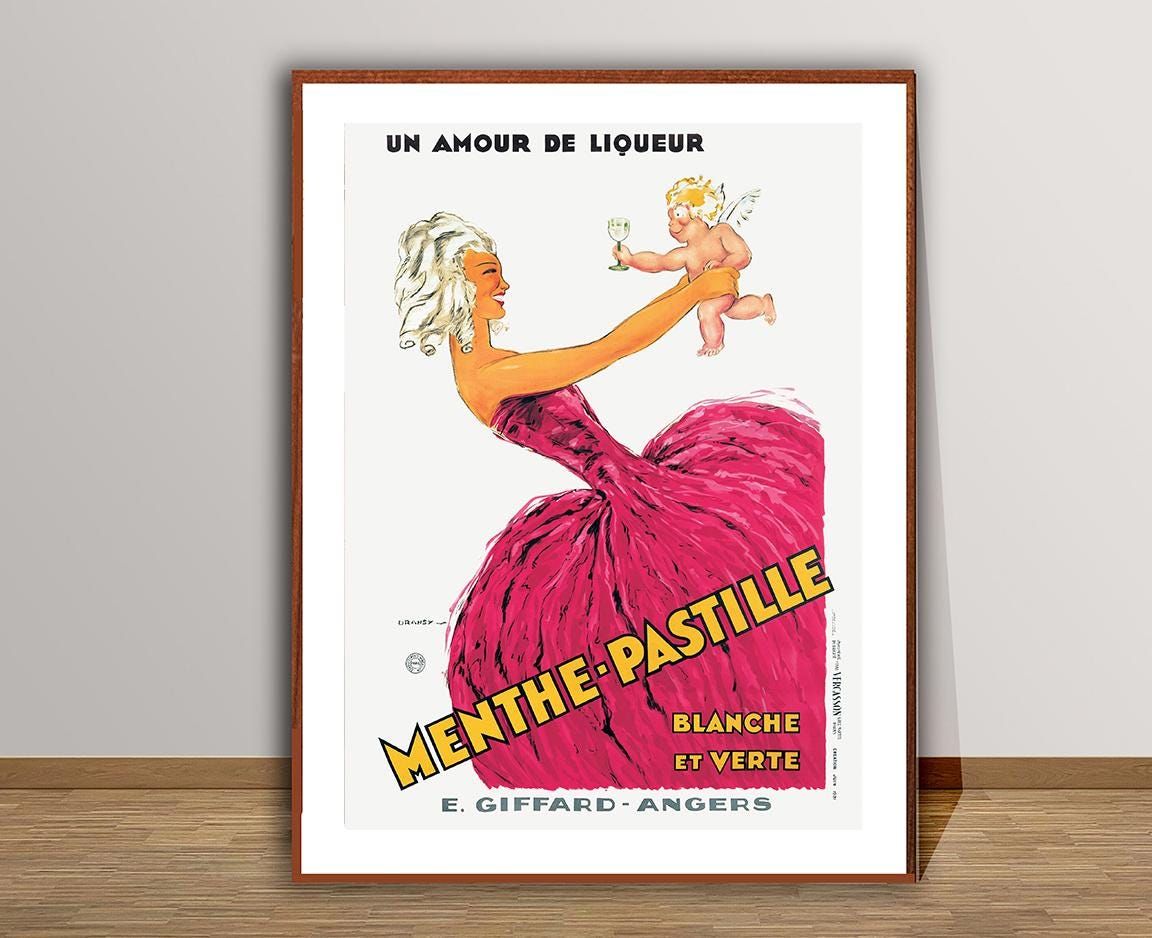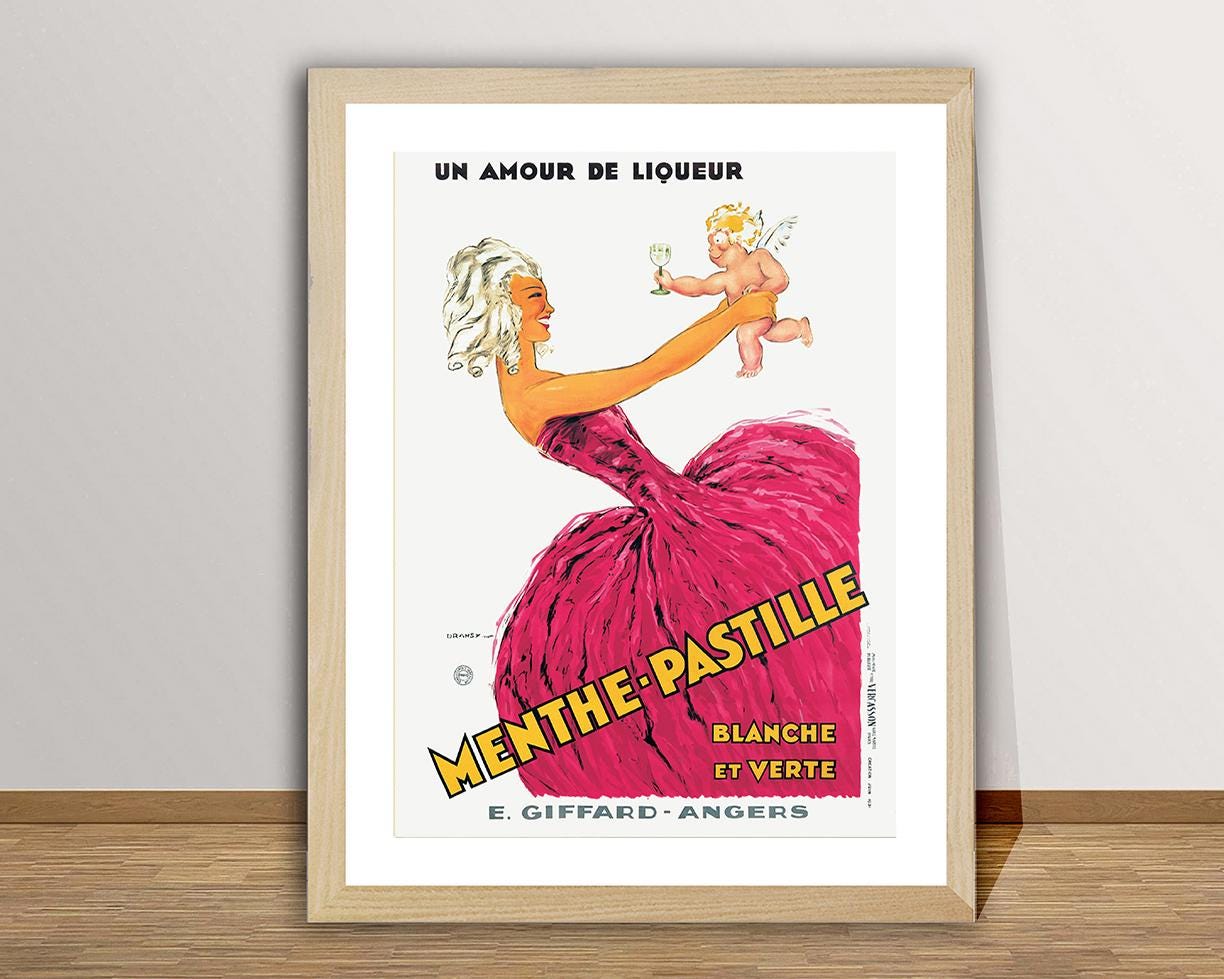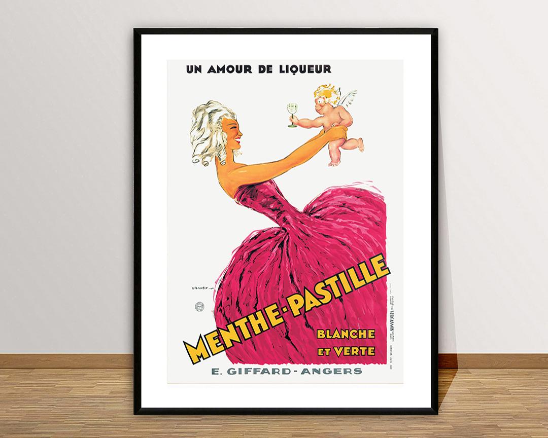 Vintage Menthe Pastille, Un Amor de Liqueur Advertisement Art Print - Reproduction of a Vintage Drink Artwork, Decorative Purposes Wall Decor - Poster Paper or Canvas Print