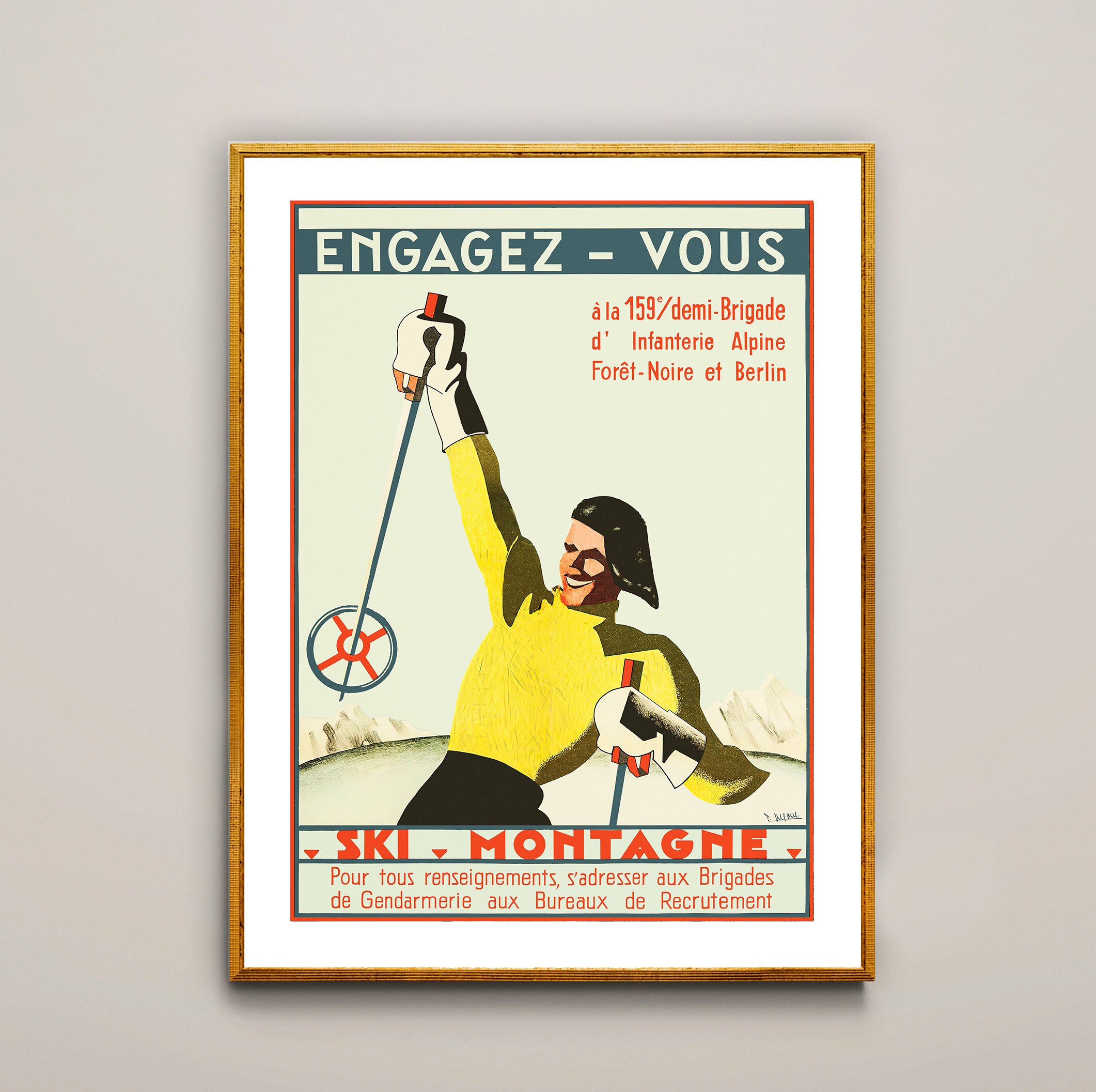 Vintage France Ski Poster: Engagez Vous Montagne, Wall Art Print