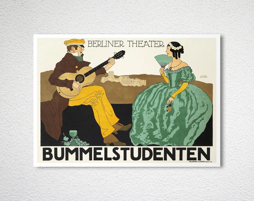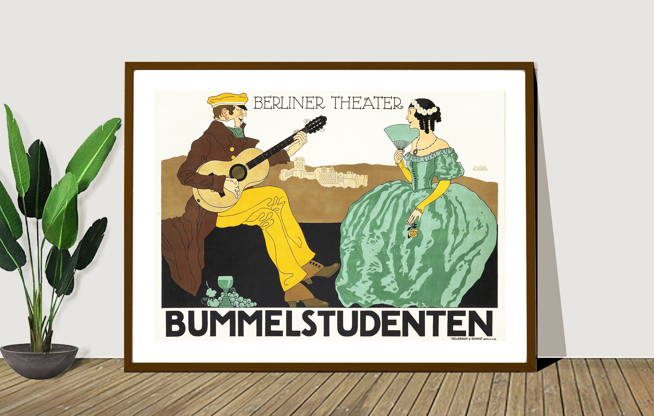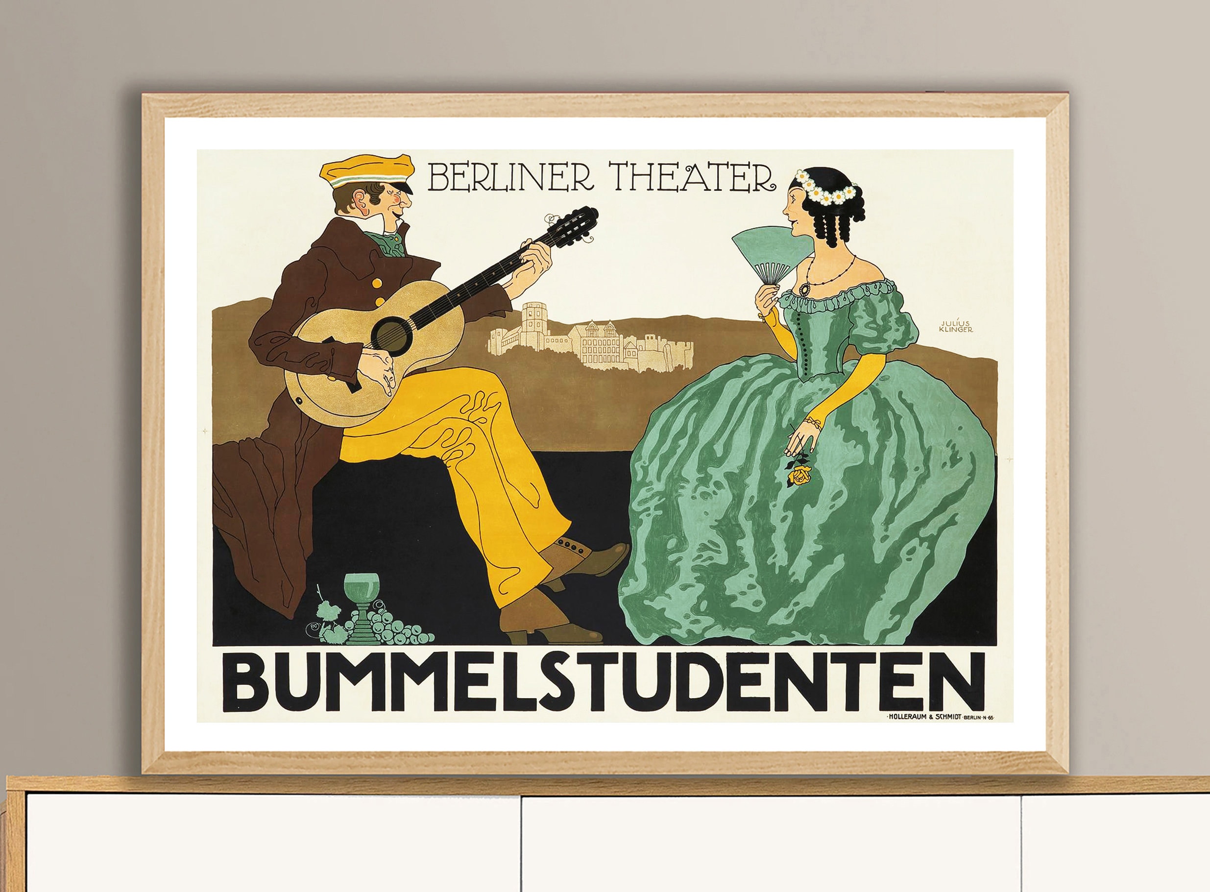 Berliner Theater Bummelstudenten Vintage Entertainment Poster by Julius Klinger - Poster Paper or Canvas Print / Gift Idea