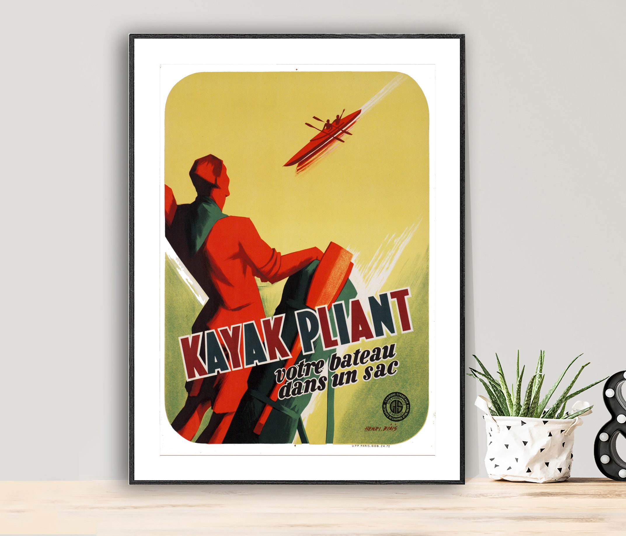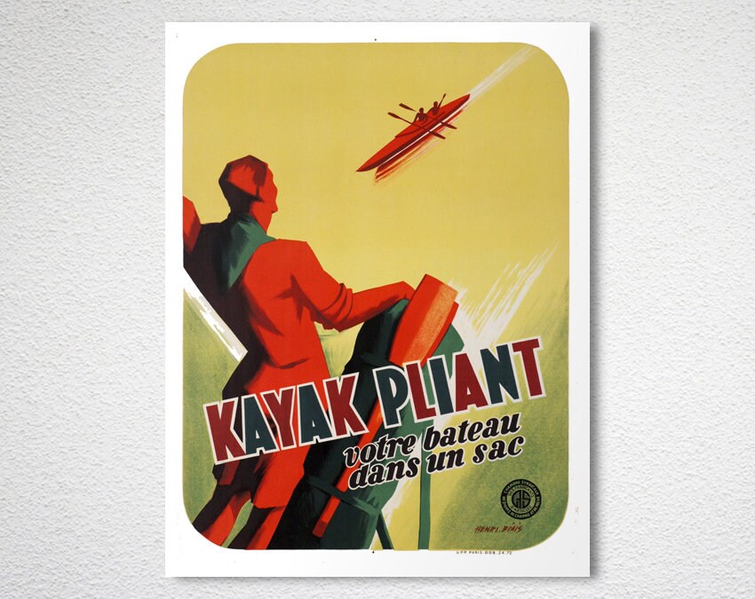 Kayak Pliant Vintage Travel Poster - Poster Paper or Canvas Print / Wall Decor